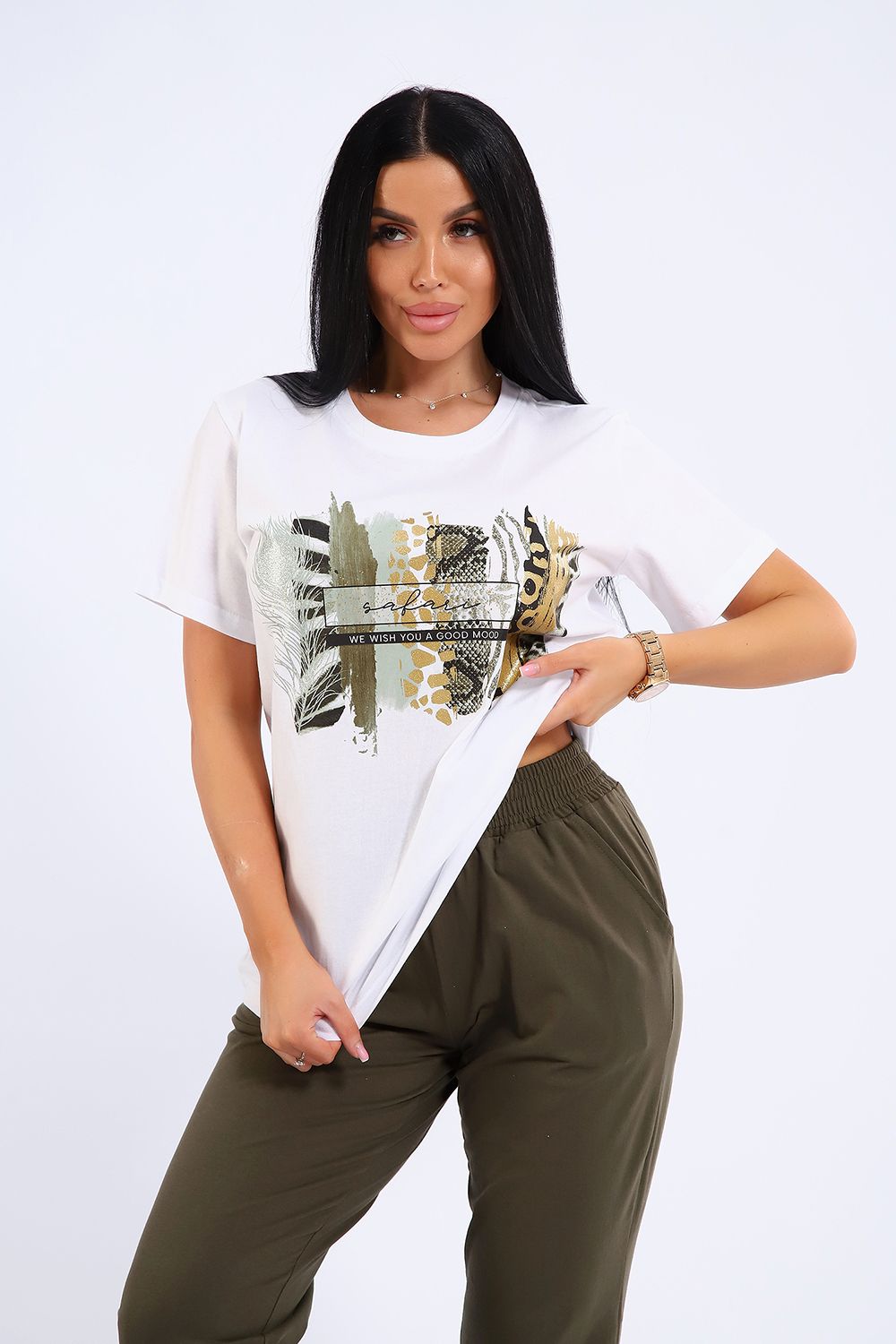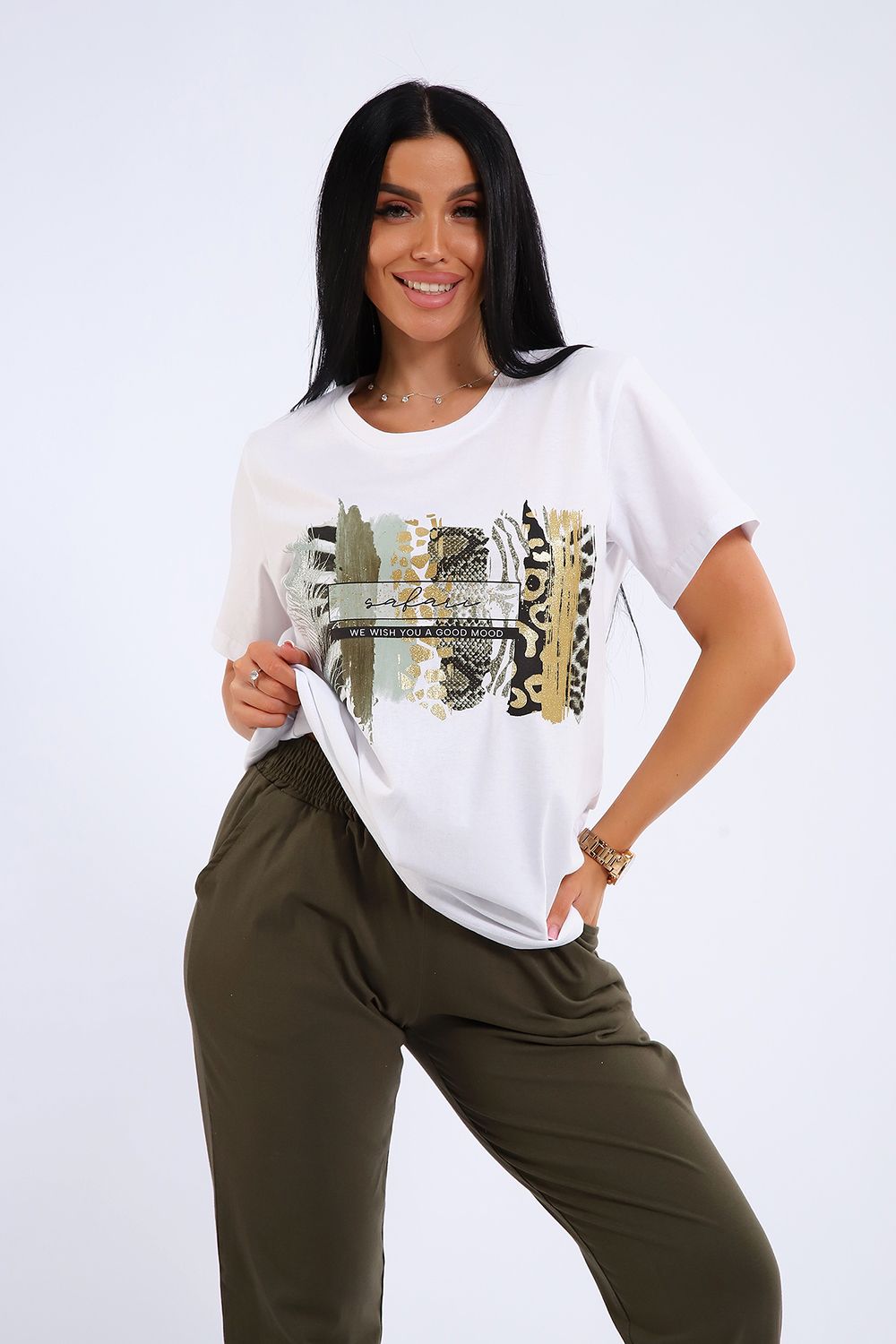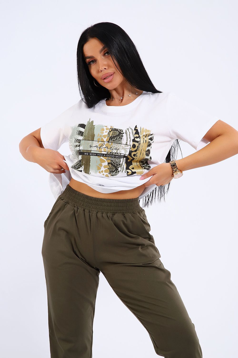 Яркий, модный, стильный женский костюм из мягкого трикотажного полотна высокого качества. Состоит из легкой кофты белого цвета с ярким принтов на полочке и брюк. Универсальный и практичный повседневный костюм в спортивном стиле будет удобным и комфортным во многих ситуациях - прекрасно подойдет для встреч с друзьями и прогулок, активного отдыха и любительского спорта, для дома, улицы и дачи, для похода в магазин и поездки на пикник. Костюм представлен в трех стильных расцветках, чтобы модницам было из чего выбрать!