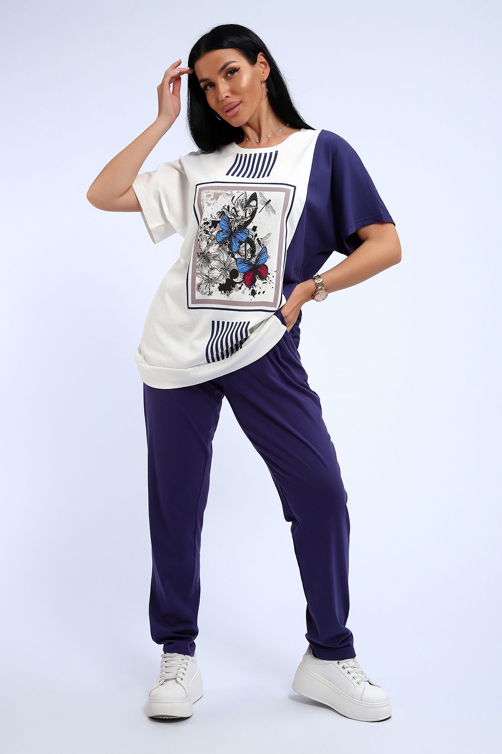 Эффектный костюм в спортивном стиле из трикотажного полотна ярких оттенков. В комплекте представлена кофта свободного кроя со спущенным рукавом и узкие, но не обтягивающие брюки. Изюминкой костюма является сочетание контрастных оттенков в дизайне кофты, украшенная яркими цветами. Трикотажные костюмы стали одним из самых популярных и востребованных атрибутов в гардеробе современных женщин, так как не только подчеркивают стиль и индивидуальность, но и обеспечивают комфорт и удобство в повседневной жизни.