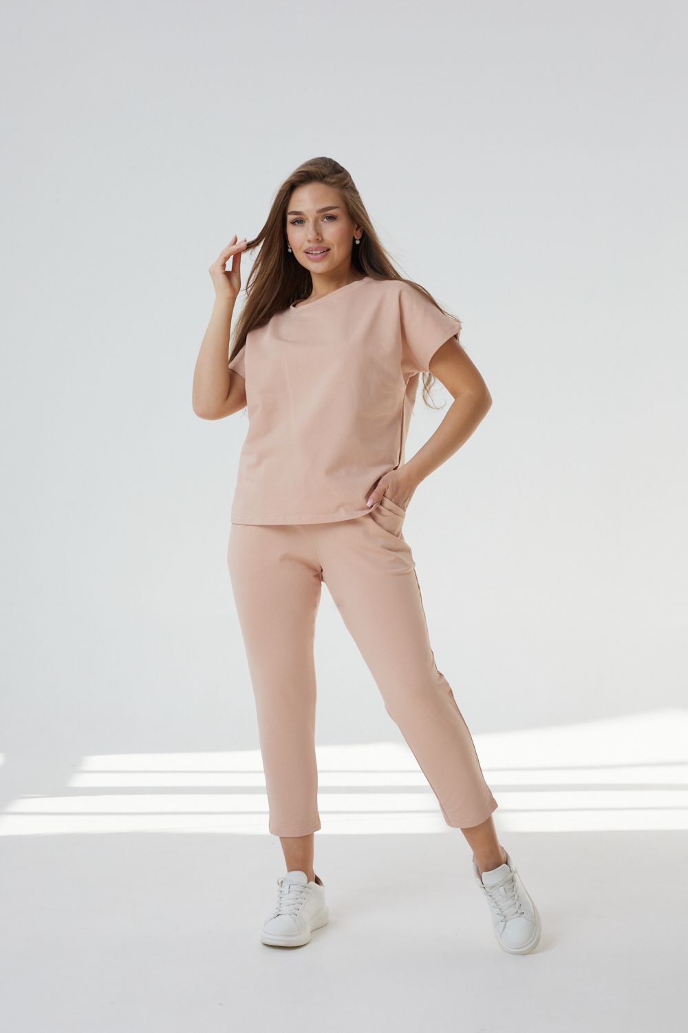 Представляем Вашему вниманию стильный и удобный костюм, изготовленный из качественного материала. Костюм состоит из укороченных брюк и футболки. Наряд обладает исключительной нежностью и мягкостью, которые не проходят через долгое время и позволят Вам наслаждаться комфортом. Очаровательная расцветка этого костюма подарит Вам хорошее настроение и положительные эмоции.