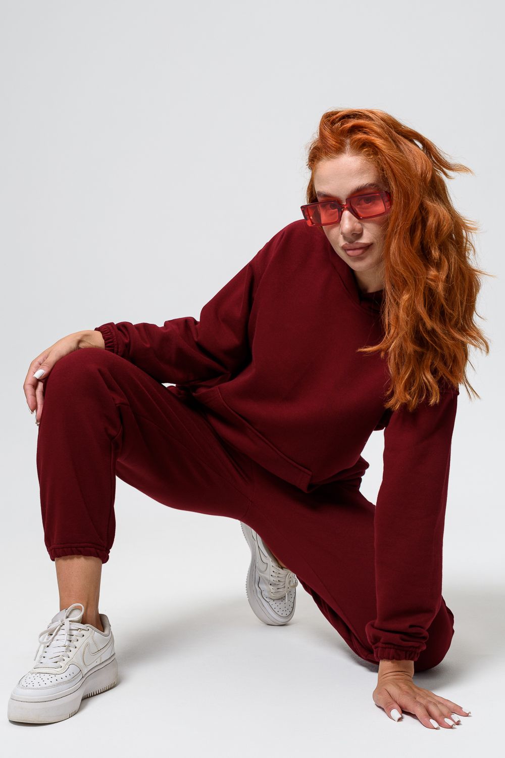 Костюм спортивный женскиий 14424 оверсайз - винный