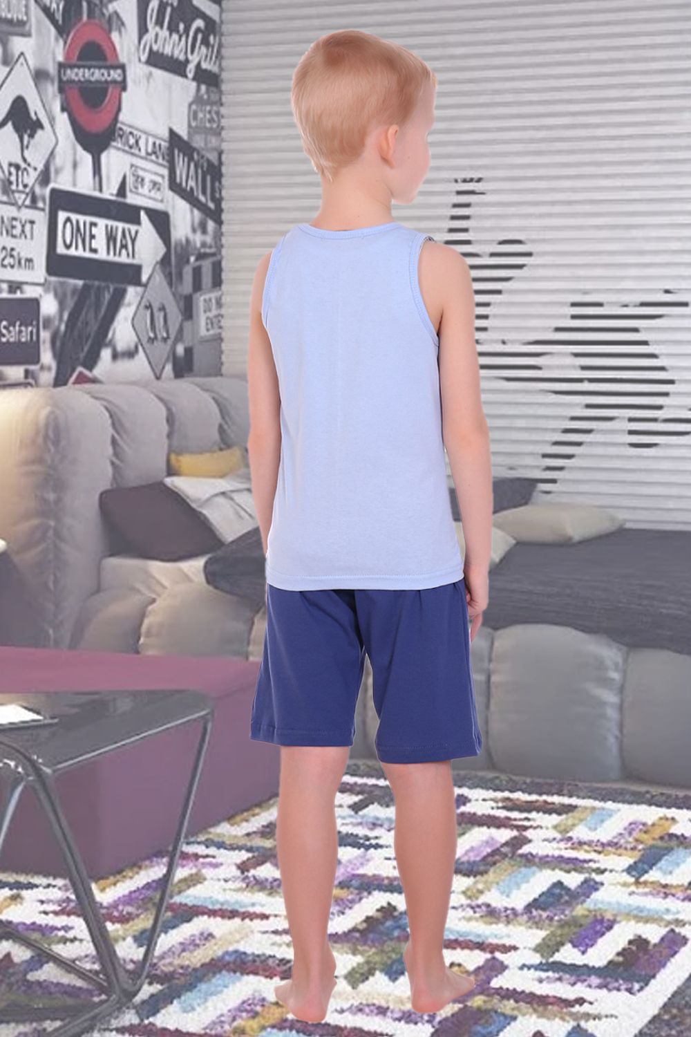 Летний костюм для мальчика с удлинёнными шортами свободного кроя. Притачной пояс со шнурками. Майка с современным принтом - мотоцикл. В размерах 30-32 горловина и проймы обработаны бейкой, а в 34-38 - плоским швом. В боковых швах глубокие внутренние карманы. Верхний срез кармана соединён с поясом, поэтому нет лишних строчек.