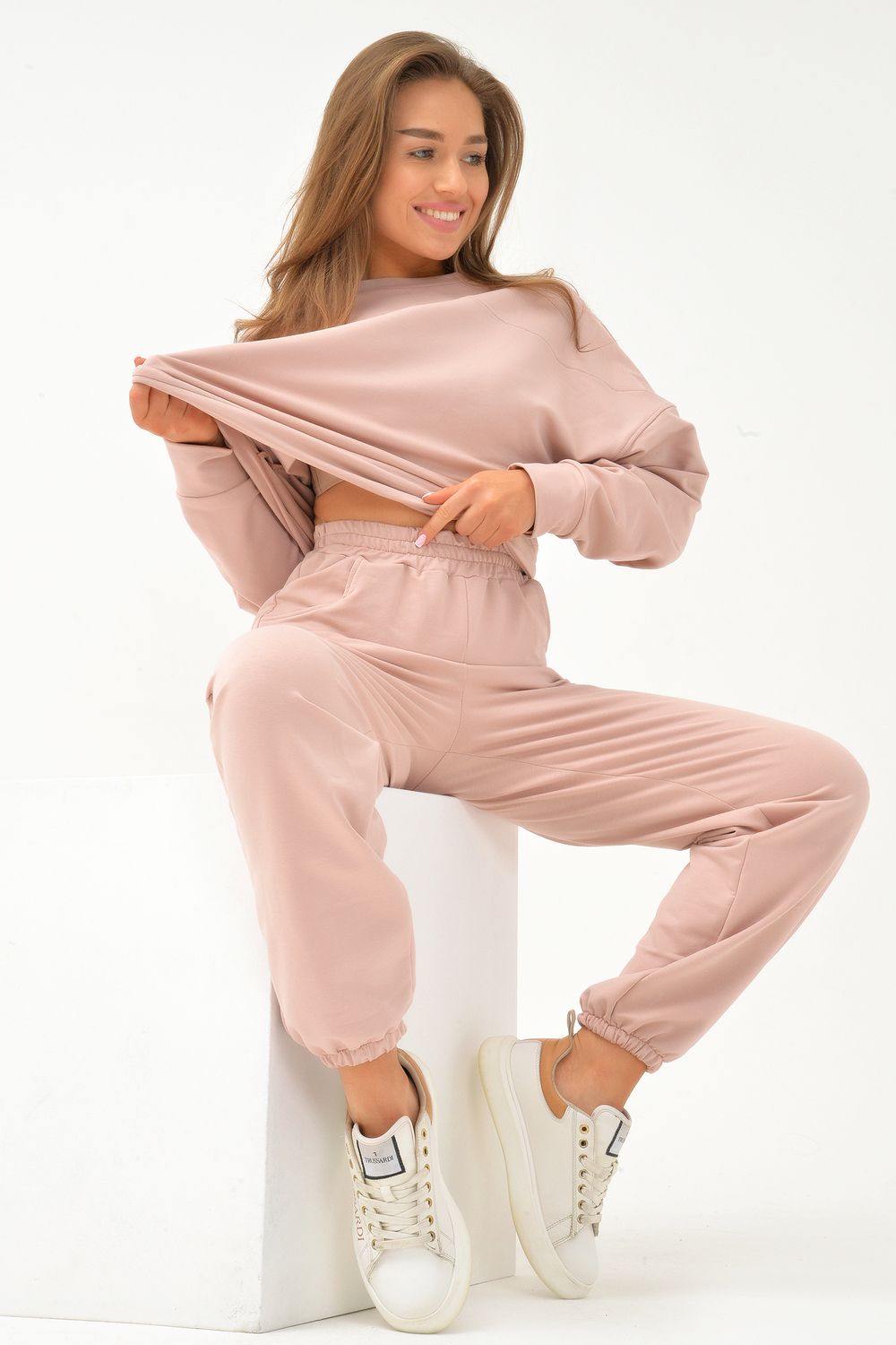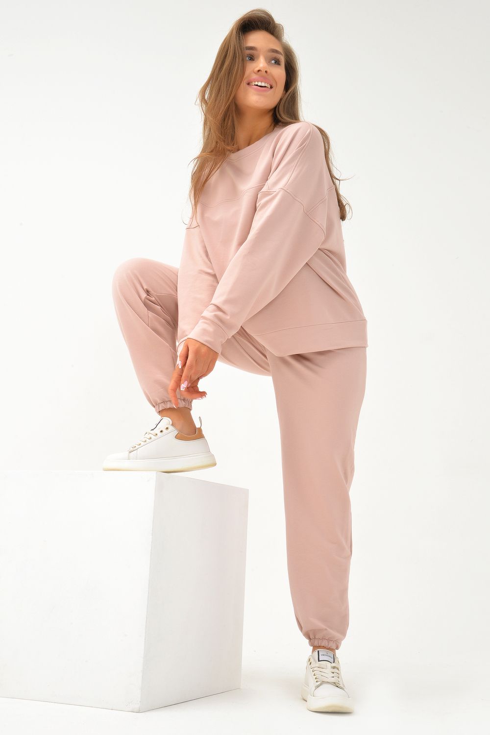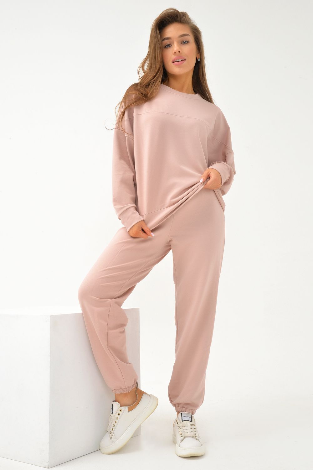 Повседневный женский оверсайз(oversize) костюм с брюками для девушки хлопок, благодаря актуальному свободному крою нарядный свитшот женский удлиненный с длинным рукавом хорошо будет смотреться при любом телосложении. Кофта женская однотонная с круглым вырезом на спине подчеркнет Вашу изящность, с прямыми брюками женскими стрейч классические можно надеть в офис на работу. Худи женская без капюшона сделано из качественной ткани. Модный костюм двойка женский изготовлен из футера 2 нитки без начеса, что позволяет аккуратно ему прилегать к телу и делает его легким. Легкий джемпер можно надеть в путешествие, на прогулку, для хореографии, на занятия спортом или прогулку с малышом. Фасон фитнес комплекта универсальный, подойдет как для подростков, для девочек, для школьниц, студенток, так и для беременных женщин и кормящих мам. Верх костюма идет с воротником из той же ткани, манжеты из той же резинки, низ с резинкой на талии. Свитшоты женские без капюшона хит сезона будущего лета выполнены в трендовых цветах. Размерный ряд 46-48, 50-52 позволяет заказать костюмы разных размеров для парных образов мамы и дочки. Трикотажное изделие с hoodi можно приобрести в качестве подарка на день рождения, 8 марта. Костюм двойка можно носить как летом в качестве самостоятельной вещи, так и весной, осенью под курткой.