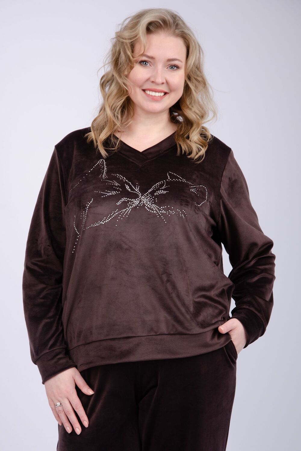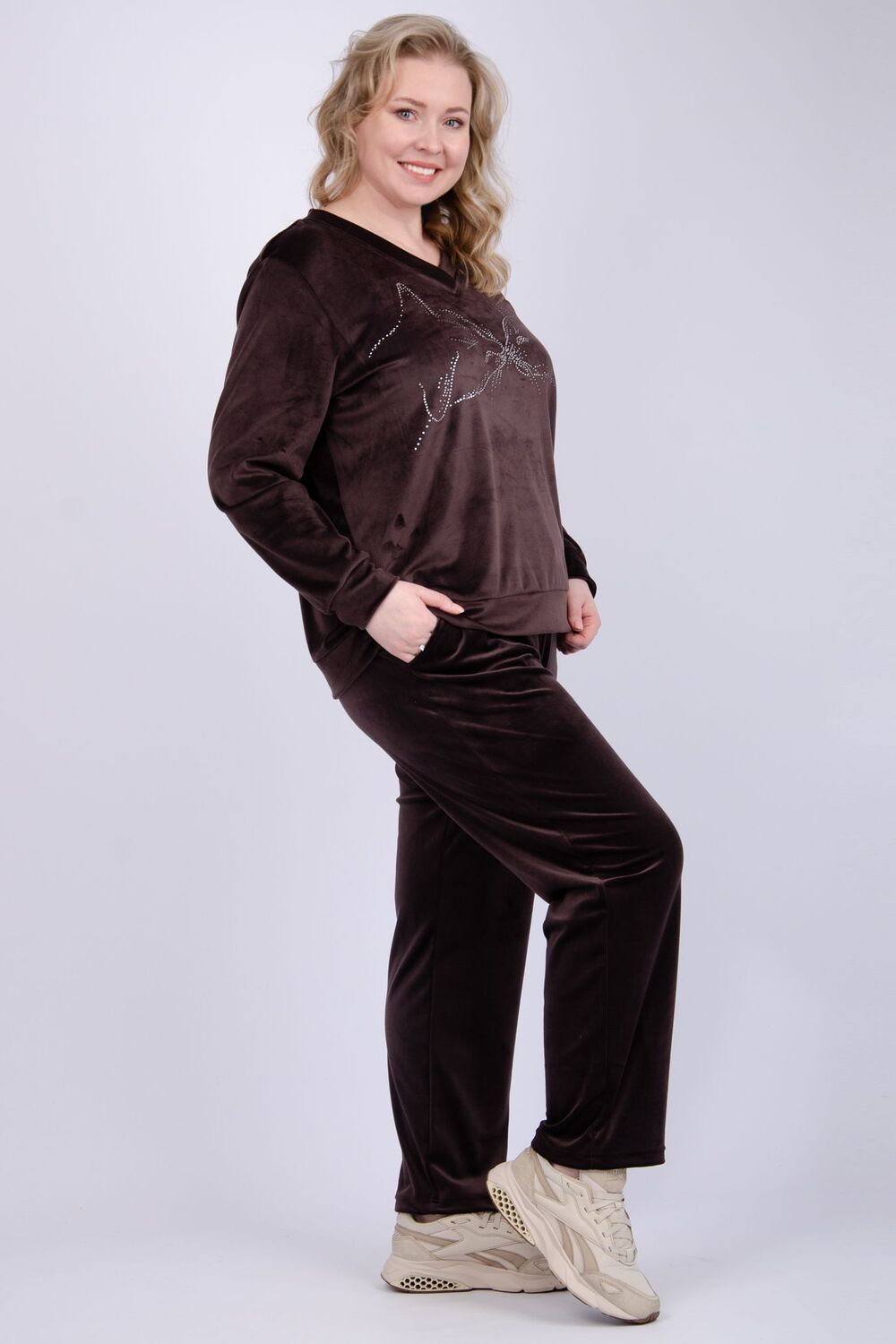 Женский велюровый костюм - это идеальное сочетание стиля, комфорта и практичности для повседневной жизни. Трикотажный комплект-двойка состоит из свитшота и брюк, которые будут отлично сочетаться с другими вещами из вашего гардероба. Высокая посадка и широкий размерный ряд, включая большие размеры, позволит подобрать комплект для разных типов фигур.