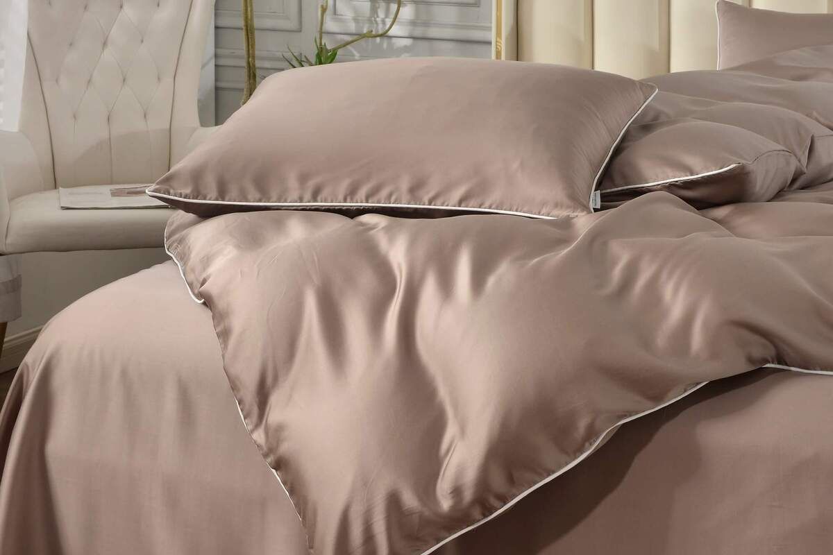 Для нашего фирменного постельного белья Elizabeth мы используем 100% тенсель (эвкалиптовое волокно) пряжи 60s, сатиновое плетение плотностью 300ТС. Комплект выполнен в однотонном дизайне с изящным белым кантом по краю пододеяльника и наволочек.