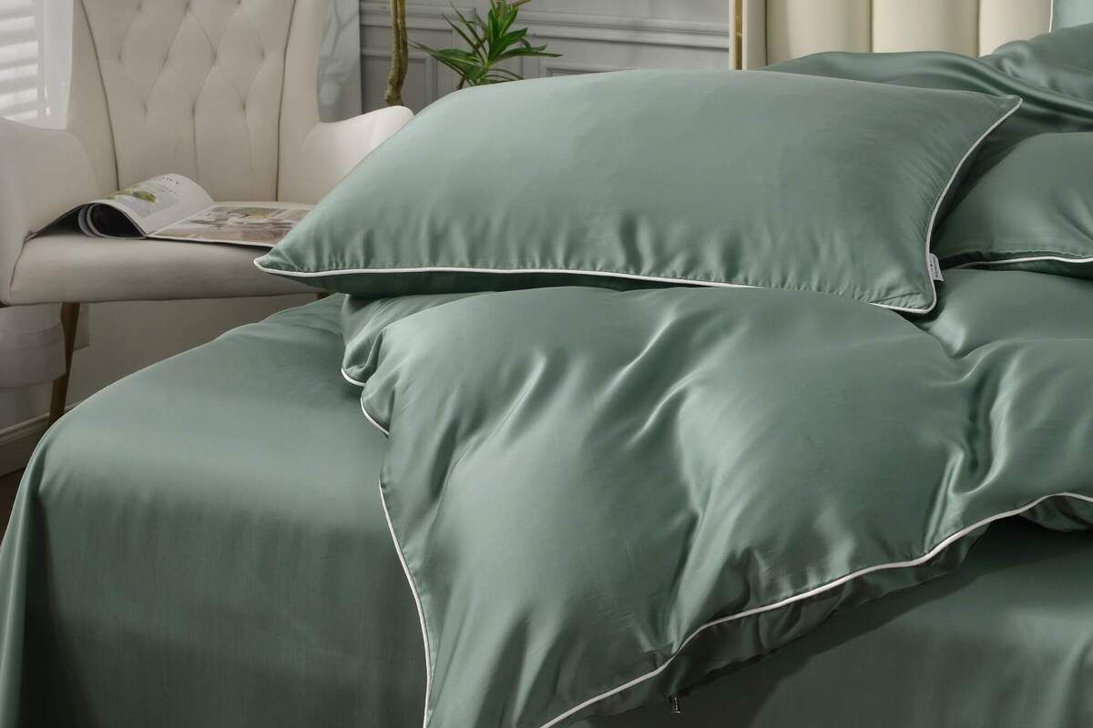 Для нашего фирменного постельного белья Elizabeth мы используем 100% тенсель (эвкалиптовое волокно) пряжи 60s, сатиновое плетение плотностью 300ТС. Комплект выполнен в однотонном дизайне с изящным белым кантом по краю пододеяльника и наволочек.