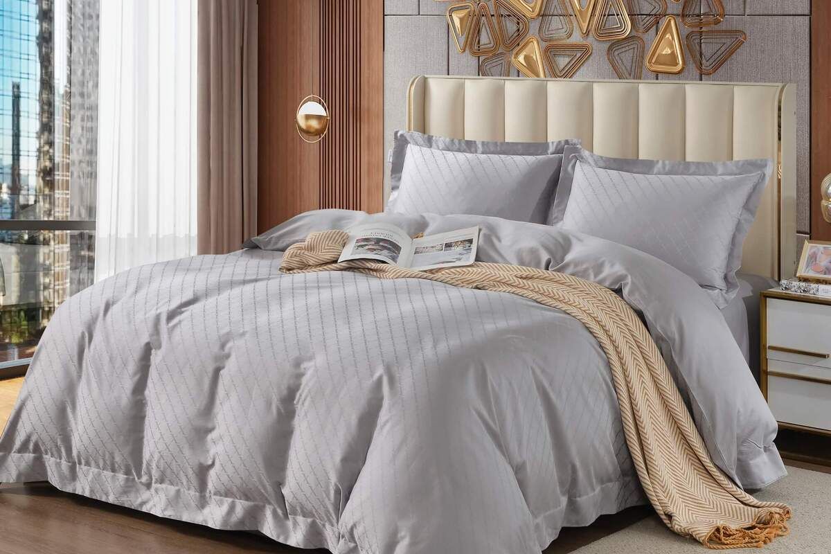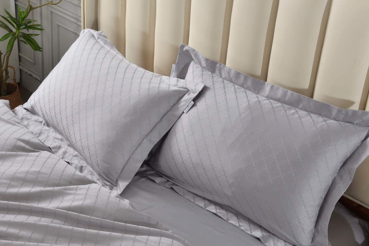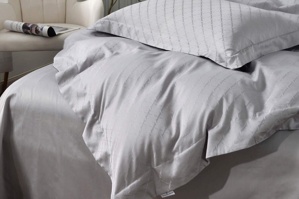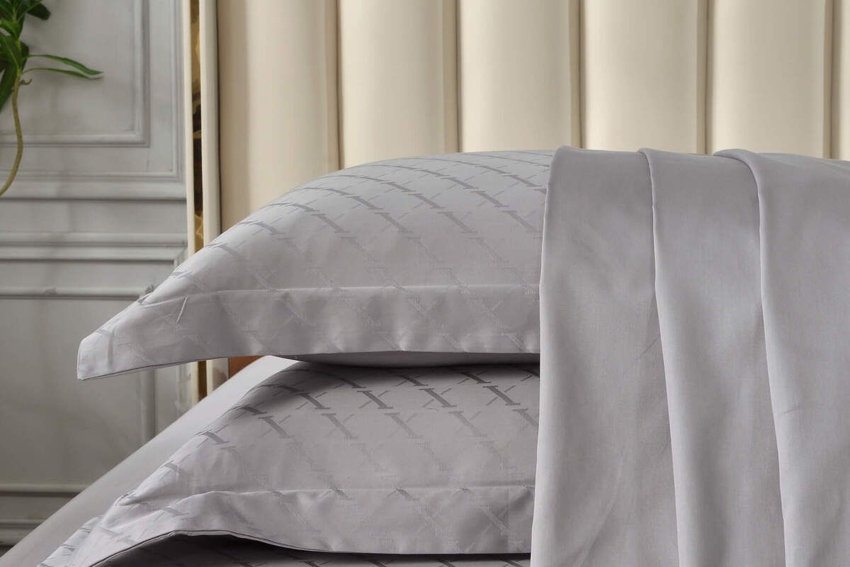 Для нашего фирменного постельного белья из сатин-жаккарда Fresa мы используем макосатин из пряжи 60s плотности 300ТС. В качестве жаккардового орнамента выбран сдержанный ромбовидный узор – классический, но не обыденный, в современном графичном оформлении.