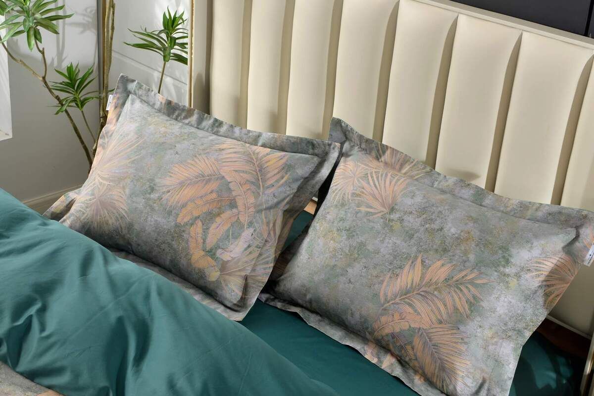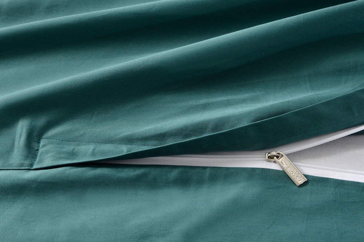 Изящный пошив с ушками 5см на наволочках и пододеяльнике. Лицевая сторона – принт, обратная сторона – однотонный макосатин глубоких цветов, что делает комплект сбалансированным, статусным и дорогим визуально. Наволочки и пододеяльник оснащены высококачественными молниями YKK с брендированным бегунком, изготовленным специально для The Eleventh Kingdom. Для комфортного вдевания пододеяльника мы используем молнии увеличенной длины 160см, аккуратно скрытые тканевым клапаном 25мм.