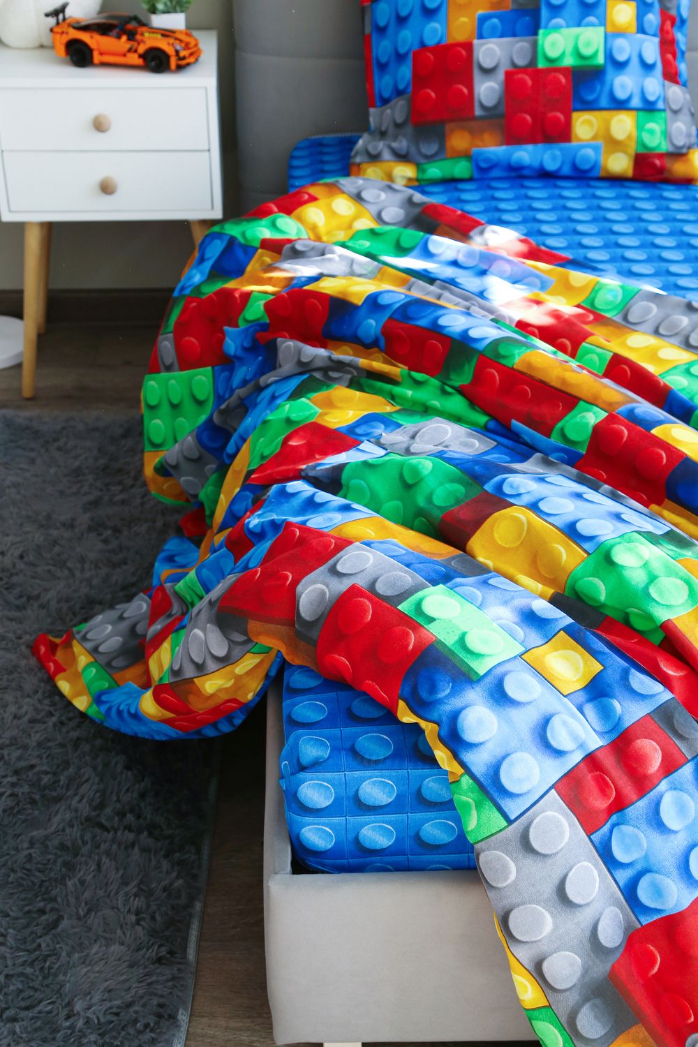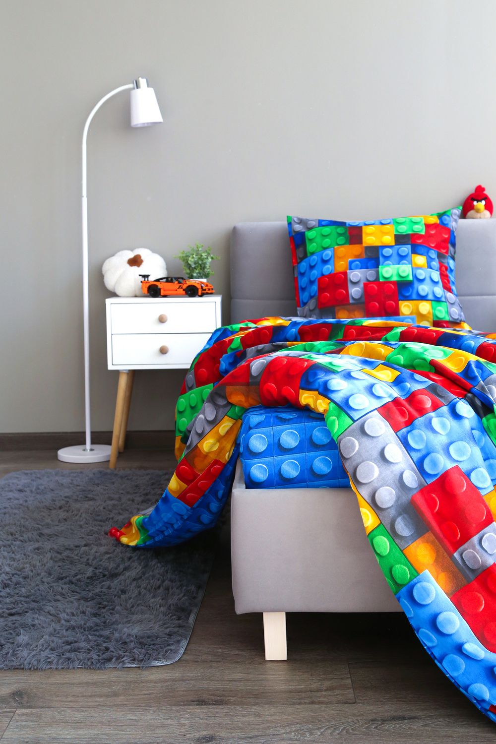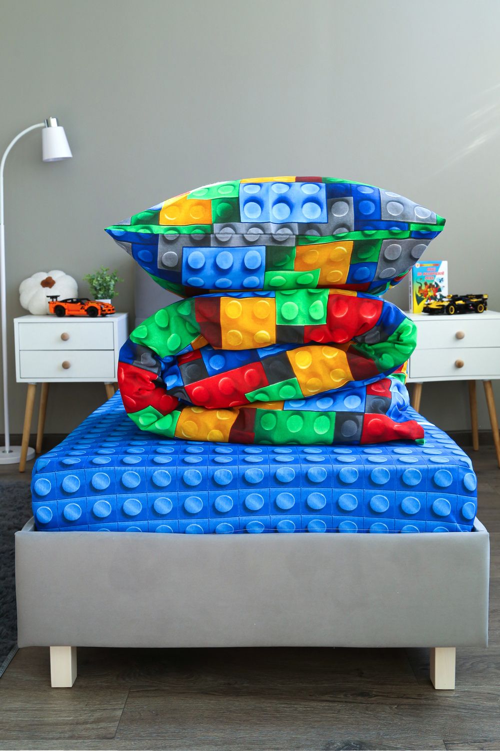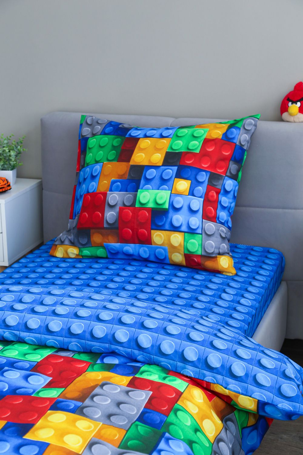 Комплект полутороспального постельного белья из хлопковой ткани. Популярный размер, который подойдет как на 1.5-спальную, так и на односпальную кровать, в том числе для детской кровати и матраса 100х200 см, 110х200 см, 120х200 см. В набор входят постельные принадлежности: пододеяльник 1 шт - 145х215 см, простынь 1 шт - 150х220 см и наволочка с клапаном 1 шт - 70х70 см для подушки 70*70 и 50 на 70. Материал – бязь, натуральный 100% хлопок. Бязь обладает более высокой плотностью, чем полуторные комплекты белья из поплина, перкаля, шелковое или полисатина. Плотность ткани 120 г/кв.м., бязь - это прежде всего практичность и оптимальный выбор. Постельное белье из бязи гладкое, мягкое и плотное, поэтому требует меньше глажки. КПБ с рисунком Lego – мега популярный стиль любимой детской игры и персонажей. Это 1,5 спальное КПБ подойдет тем, кто обожает конструкторы Лего. Красные и яркие акценты – основа гаммы именно этой постельки. В комплект входят пододеяльник с крупными кубиками лего (красный, зеленый, желтый, синий), стильная простыня в стиле лего конструктор и цветная наволочка с lego, комплектация может незначительно отличаться от изображения в карточке. Постельное белье 1.5 спальное - крутой подарок на день рождения, чтобы украсить детский интерьер. Это всегда актуальный выбор сестре, жене, девочке и подруге, коллеге. Такой аксессуар для сна и отдыха создаст уникальный, детский, и даже молодежный стиль комнаты. Хлопковый кпб размера полуторка станет находкой для стильной детской и подростковой спальни. Принт, который понравится детям, подростку, и даже взрослым. Купите в подарок девушке, парню, брату, мальчику, ребенку непоседа. Это полуторный комплект в постель для детей и малышей разного возраста, в том числе в детскую кроватку. Универсальный подарок на любой праздник - новоселье, свадьбу молодоженам, годовщину, именины, без повода. Комплект, который подойдет для квартиры, для дачи, для дома. Это комплект постельного белья для ребенка и выбор большого количества родителей в России. Качественный детский домашний комплект, предметы которого пропитаны веселым и задорным настроением. 1,5 спальный комплект постельного белья для тех, кто выбирает стильный домашний текстиль, который оценят как взрослые, так и дети! Комплект упакован в стильную и качественную упаковку и отлично подойдет в качестве подарка.