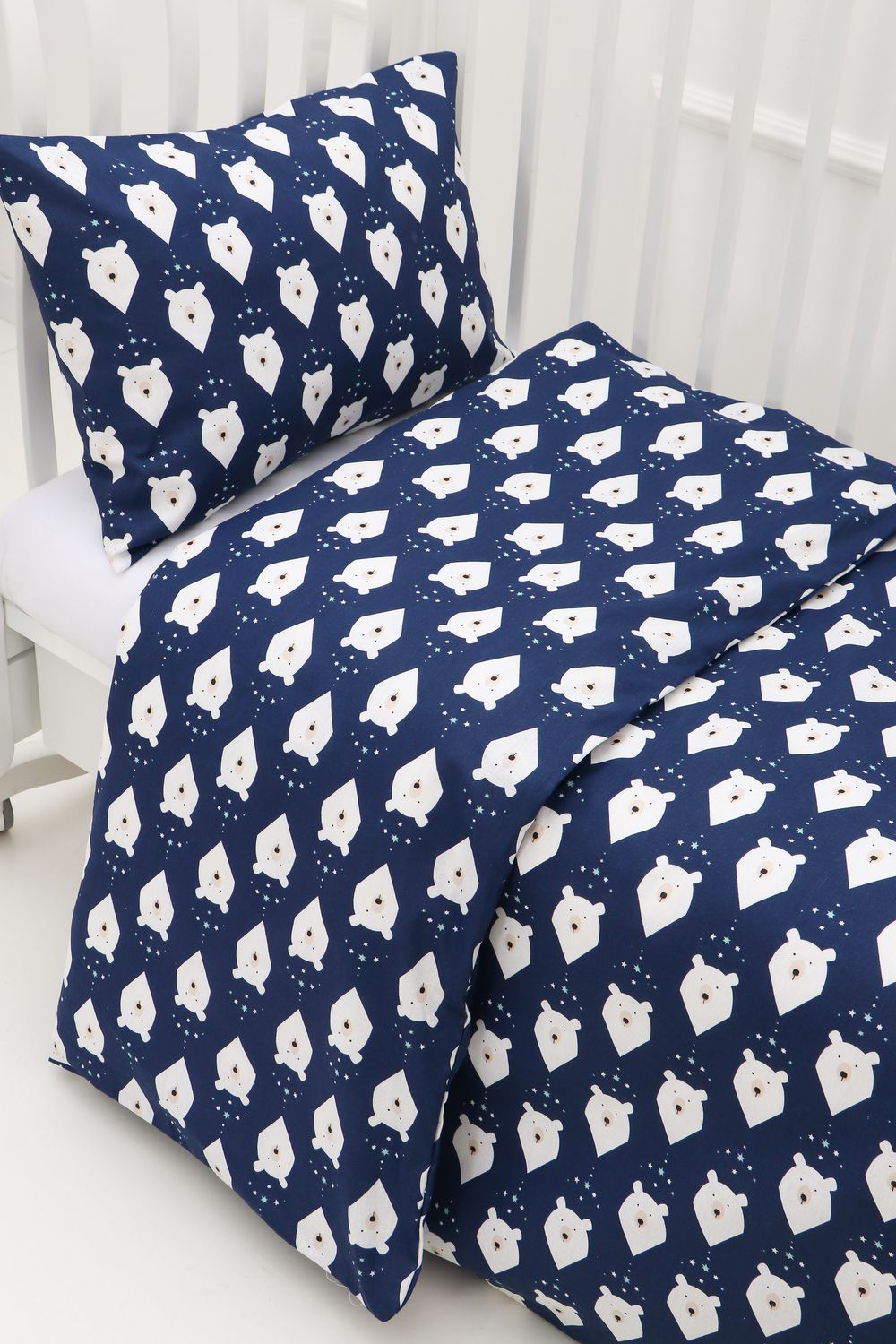 КПБ с простыней на резинке арт. КПБ-ПР/белый-мишка-синий