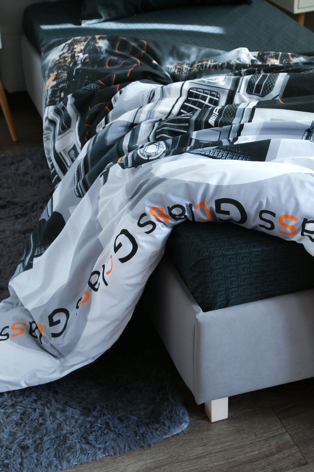 Детское постельное белье 1,5 спальное черное с рисунком автомобиля гелентваген мерседес в сером фоне из ткани поплин на 1.5 спальную кровать. Стильный дизайн гелентваген машинка понравится мальчишкам и подарит яркие мечты и сны. Постельное белье из натуральной ткани плотности 115 гр/м2, состоящий из 100% хлопка, абсолютно экологичен, не вызывает аллергии, хорошо пропускает воздух, позволяя телу дышать. При правильном уходе постельное белье 1.5 спальное с машиной прослужит вам долгое время. Предварительная стирка обязательна. Перед стиркой вывернуть изделие на изнаночную сторону. Стирать отдельно от синтетических изделий. Машинная стирка при максимальной температуре 40С, мягкий режим. Постельное белье детское 1,5 спальное с машинками стирать моющими средствами для цветных тканей. Не отбеливать. Гладить с изнаночной стороны при максимальной температуре утюга. Усадка после стирки до 3%, от заявленных размеров изделия. Ткань не подвержена образованию катышков.