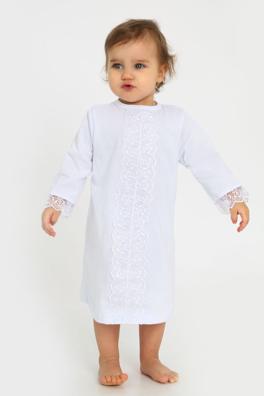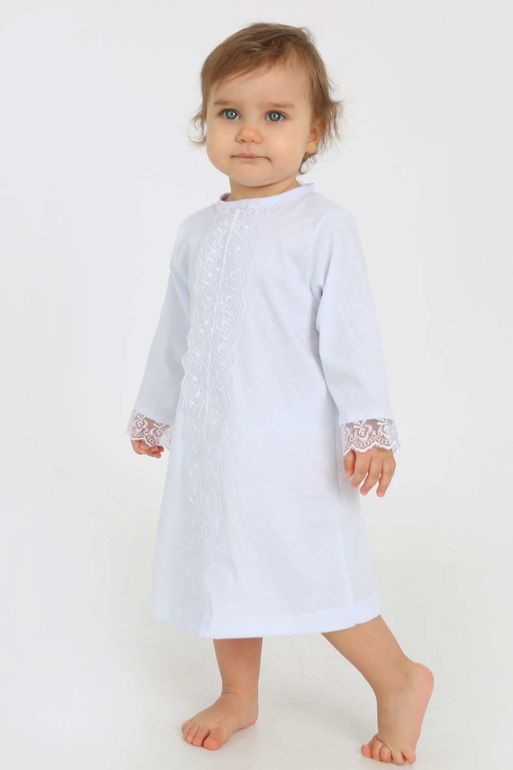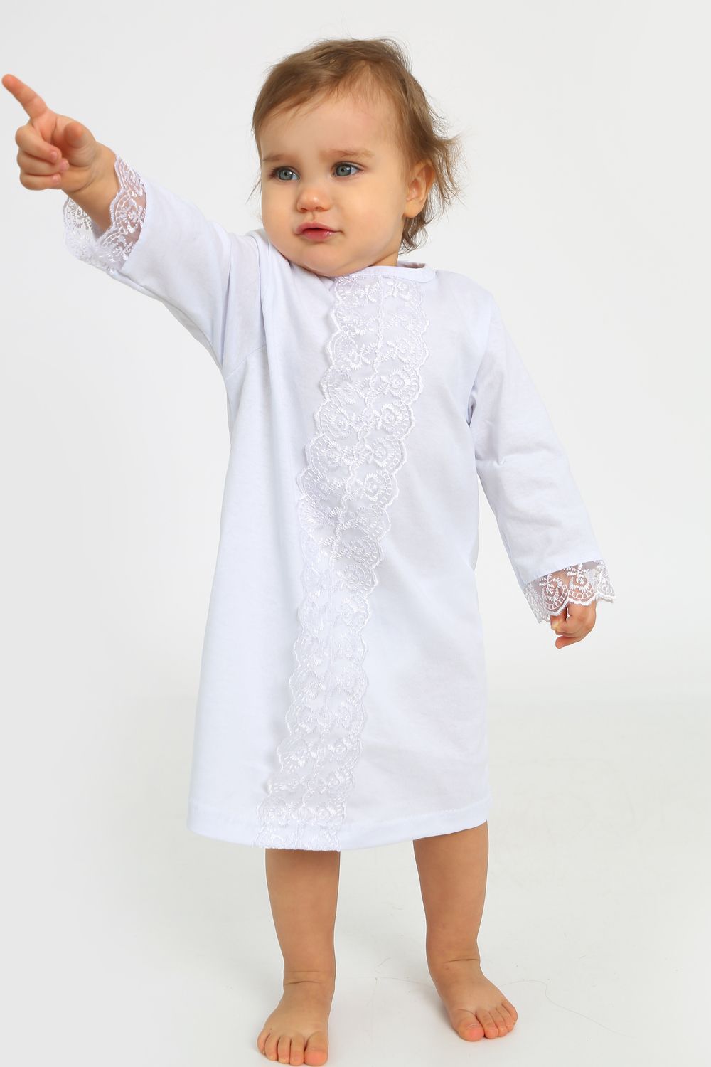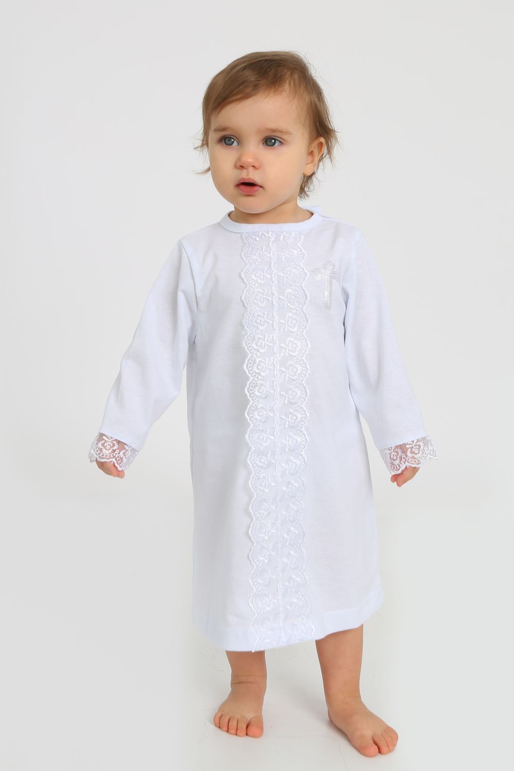 Белоснежное платье, украшено белым красивым кружевом и серебряным крестиком. Отличный вариант для первого торжества малыша - таинства крещения. Подойдет как для мальчика, так и для девочки. Выполнен из мягкой и приятной на ощупь трикотажной ткани, которая подарит максимальный комфорт в ваш светлый праздник. Длина платья от плеча до низа Рост 62-43см, 68-45см, 74-47см, 80-50см, 86-53см,92-56 см.
