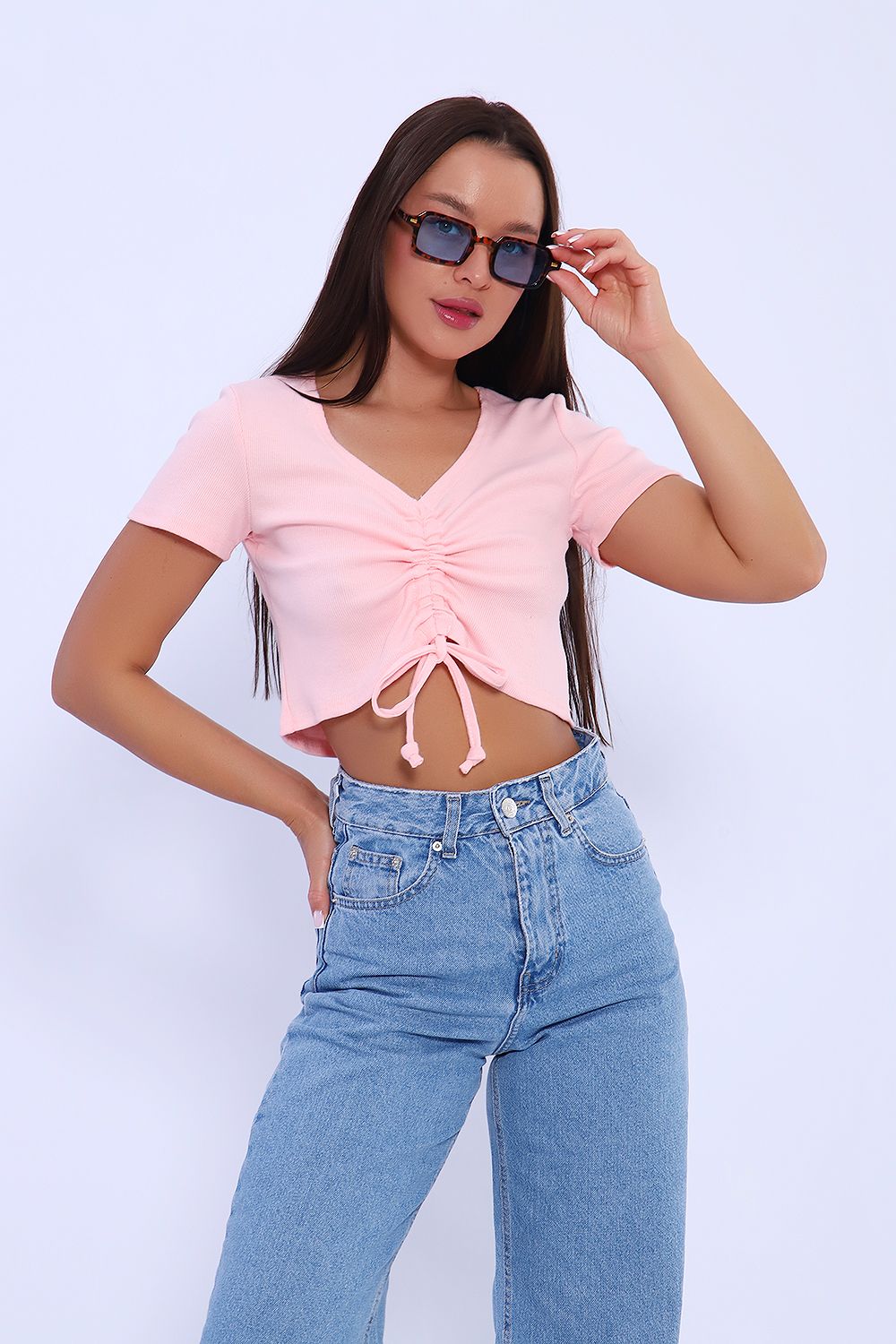 Кроп топ женский летний на завязках - это множество стильных образов на лето! Необычный дизайн топа со шнуровкой спереди разнообразит базовый гардероб. С помощью шнуровки можно легко регулировать длину топа спереди. Чтобы придать образу иривости, максимально затяните завязки на груди. Для повседневных образов можно полностью распустить шнуровку. Однотонный яркий открытый кроп топ легко сочетать с любым низом.