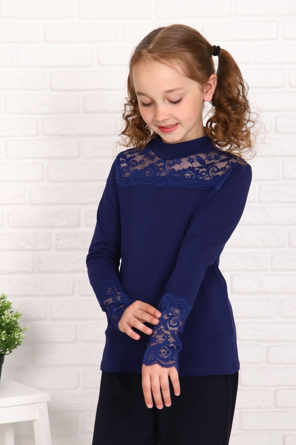 Кружевница блузка детская - темно-синий