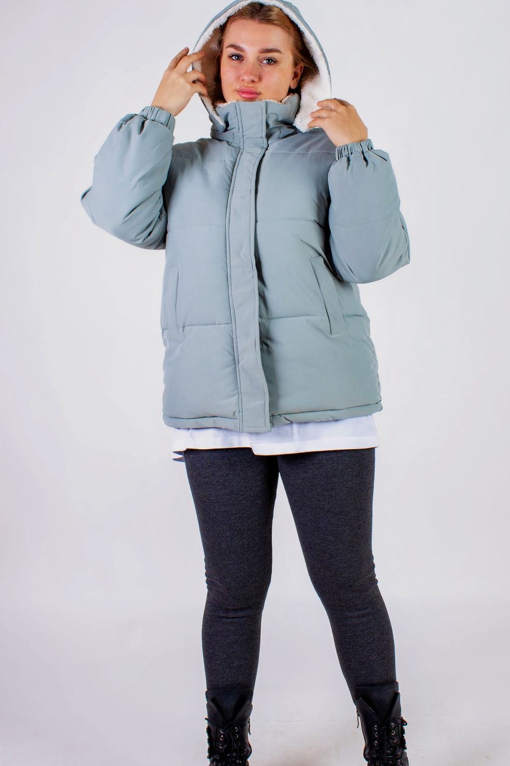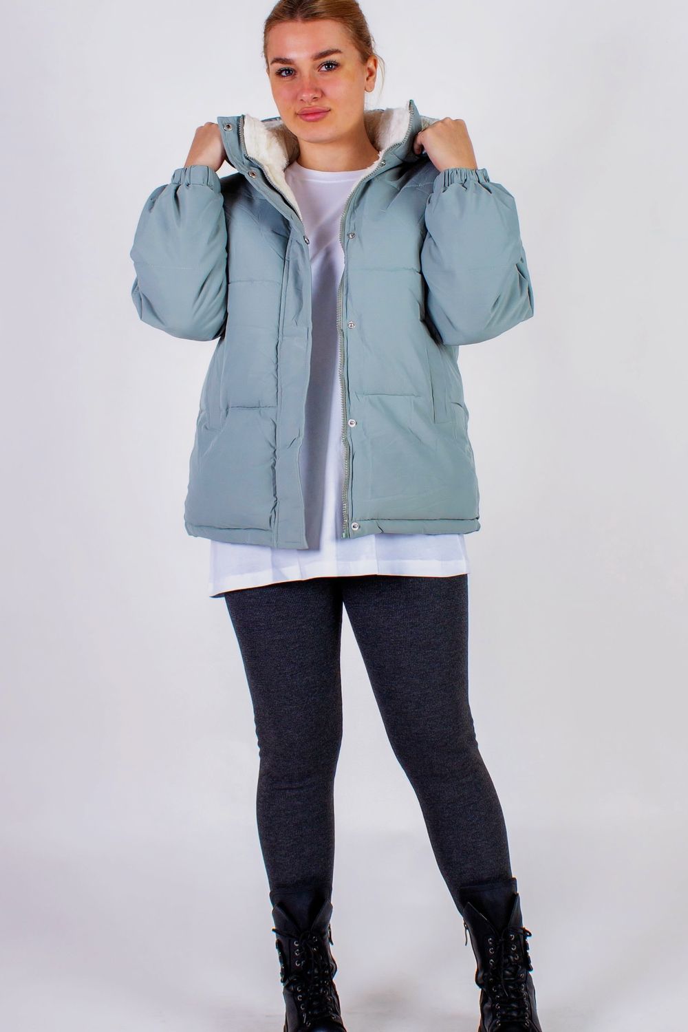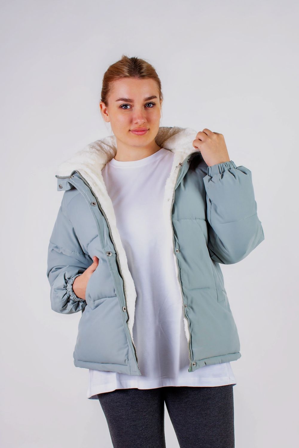 Теплая и стильная куртка, выполненная из матовой плотной тканевой основы и уютным мехом внутри, станет незаменимым элементом вашего зимнего гардероба. Эта уникальная модель не только защитит вас от холодов, но и придаст вашему образу яркий и современный акцент, подчеркивающий вашу индивидуальность. Куртка имеет практичный капюшон, также обшитый мягким искусственным мехом. Он удобно отстегивается на молнии, что позволяет вам легко адаптировать куртку под свои пожелания и погодные условия. Застёжка на молнии с дополнительной планкой на кнопках обеспечивает надежную защиту от ветра и создает аккуратный, завершающий вид. Два теплых кармана расположеных по бокам делают куртку более практичной. Здесь вы сможете удобно хранить необходимые мелочи — от ключей до носовых платков или просто погреть руки. Рукава, оформленные резинкой, обеспечивают идеальную посадку и защищают ваши запястья от холода и ветра, что делает куртку идеальным выбором для разнообразных зимних активностей. Сочетание матового верхнего слоя с белым мягким и теплым мехом внутри создает идеальный баланс между стилем и комфортом. Белоснежный цвет подкладки из меха добавляет нотку свежести и оригинальности, позволяя легко комбинировать её с различной одеждой — будь то джинсы, юбки, лосины или спортивные штаны. Эта куртка станет настоящей находкой для тех, кто ценит практичность и стиль в одном флаконе. Не упустите возможность обновить свой зимний гардероб, добавив в него этот теплый и уютный элемент.