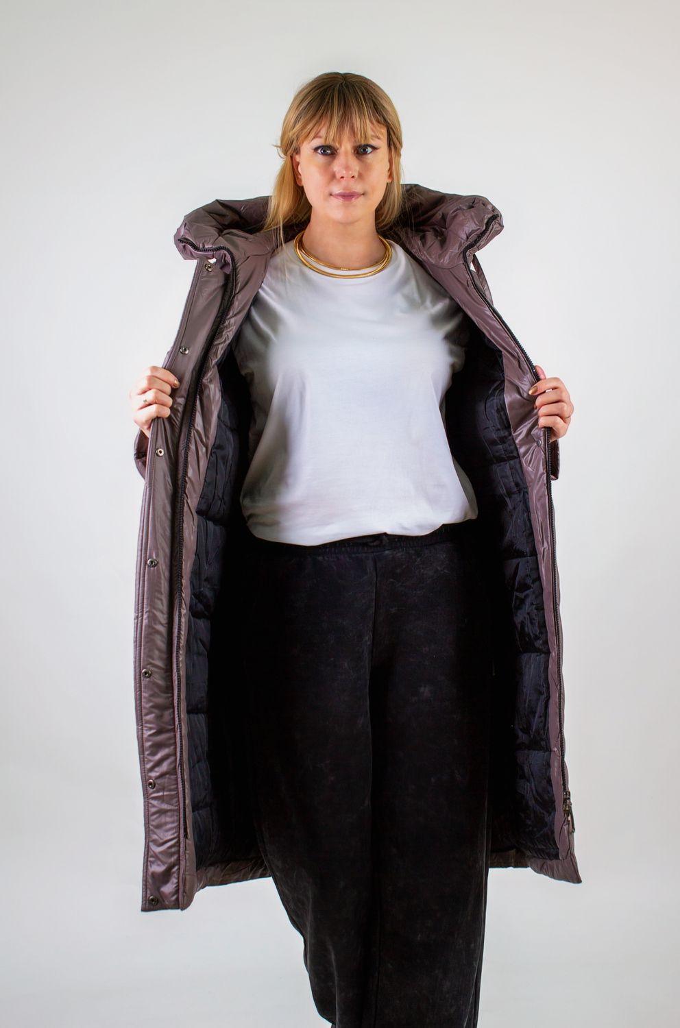 Зимняя куртка удлиненная с верблюжьей шерстью арт. 217 — идеальный выбор для тех, кто ценит сочетание элегантного стиля, исключительного комфорта и надёжной защиты от морозов, оставаясь при этом легкой. Длина изделия 103 см обеспечивает дополнительное тепло в области бедер и поясницы, прикрывает колени, что особенно важно в суровые зимние дни. Стёганая актуальной строчкой придаёт куртке современный вид и гарантирует равномерное распределение утеплителя по всей площади изделия, исключая риск образования холодных зон.
