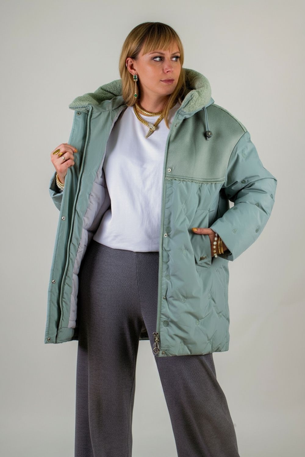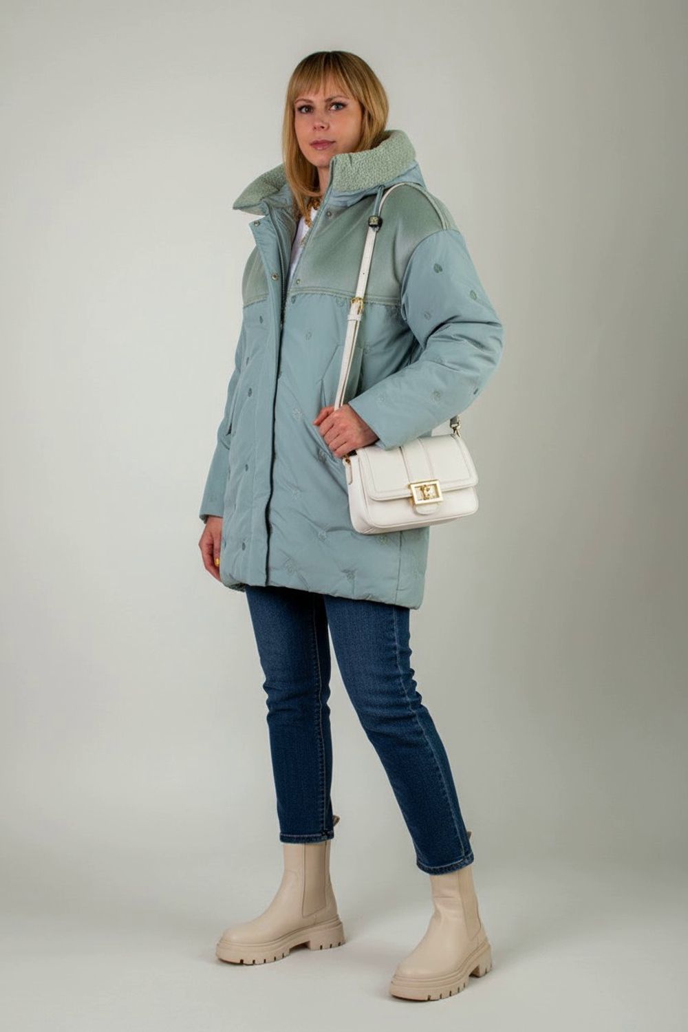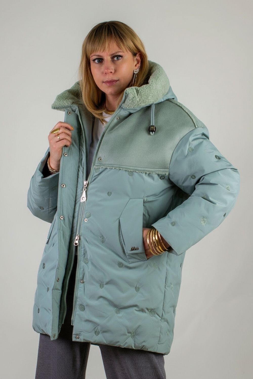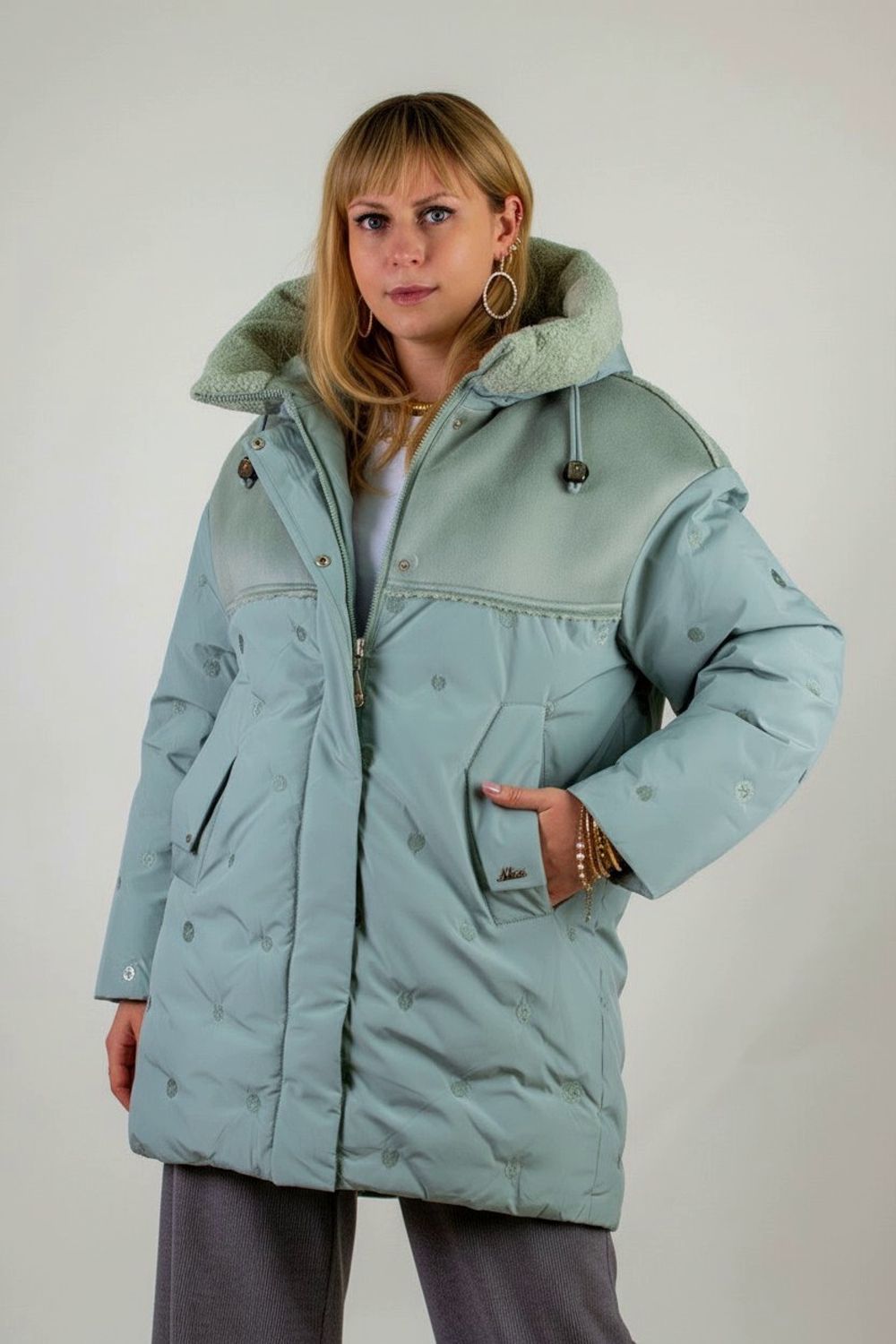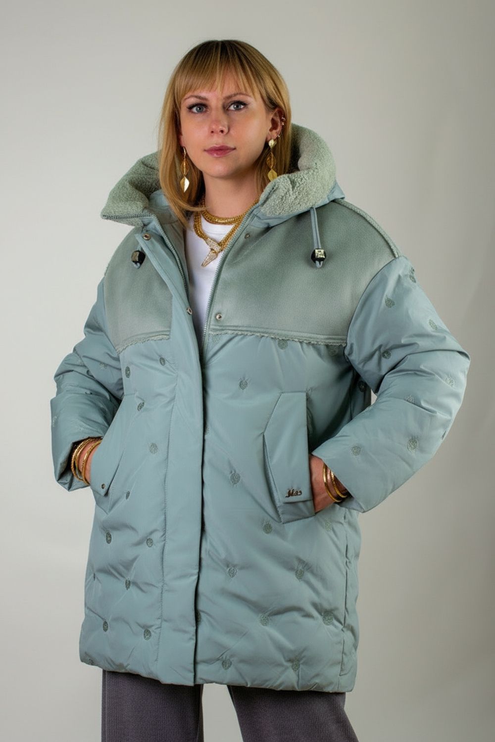 • Модная кокетка из утеплённой экозамши супер приятной на ощупь, отделана мехом в тон куртки. Вместо привычной строчки – современная ультрасовременная вышивка, придающая изделию роскошный вид.