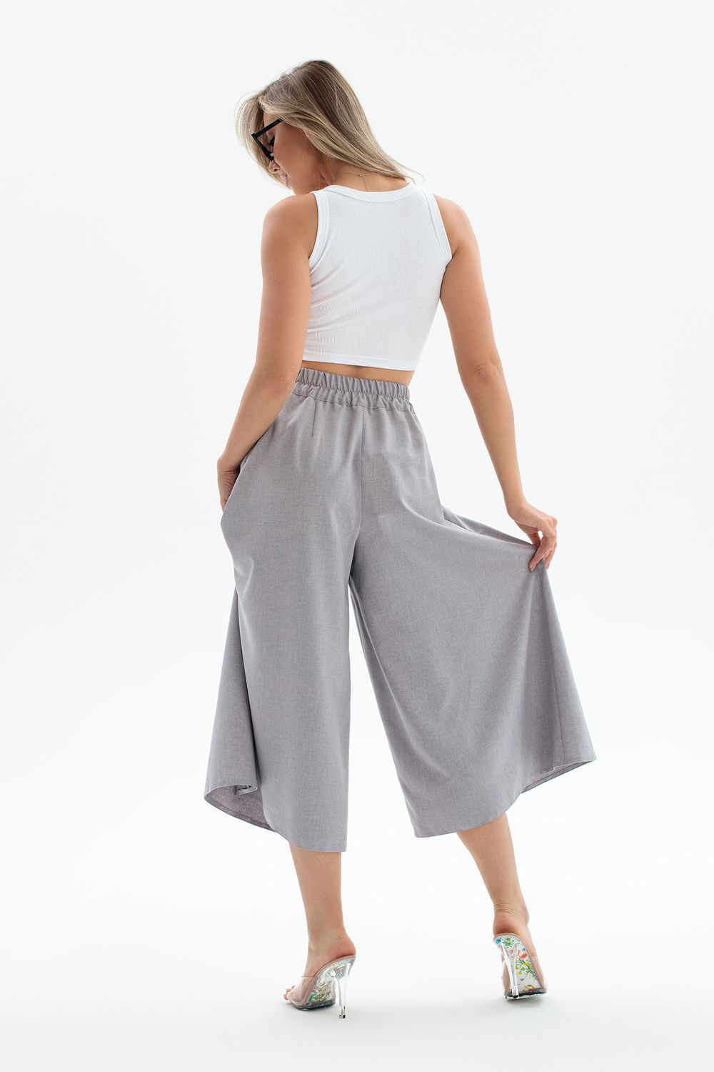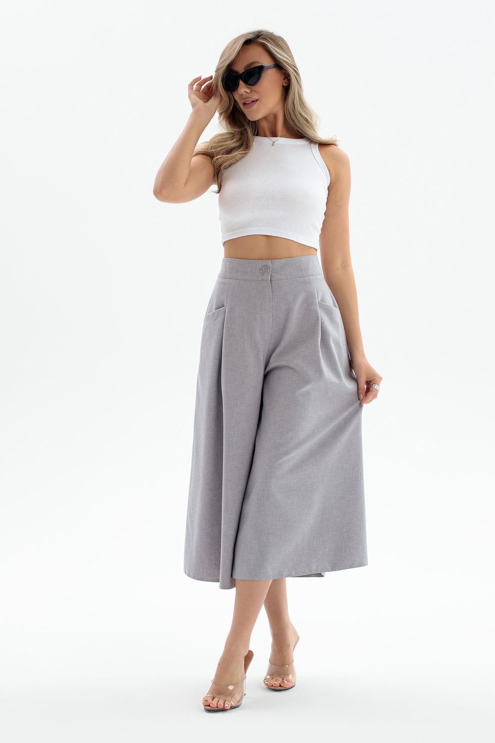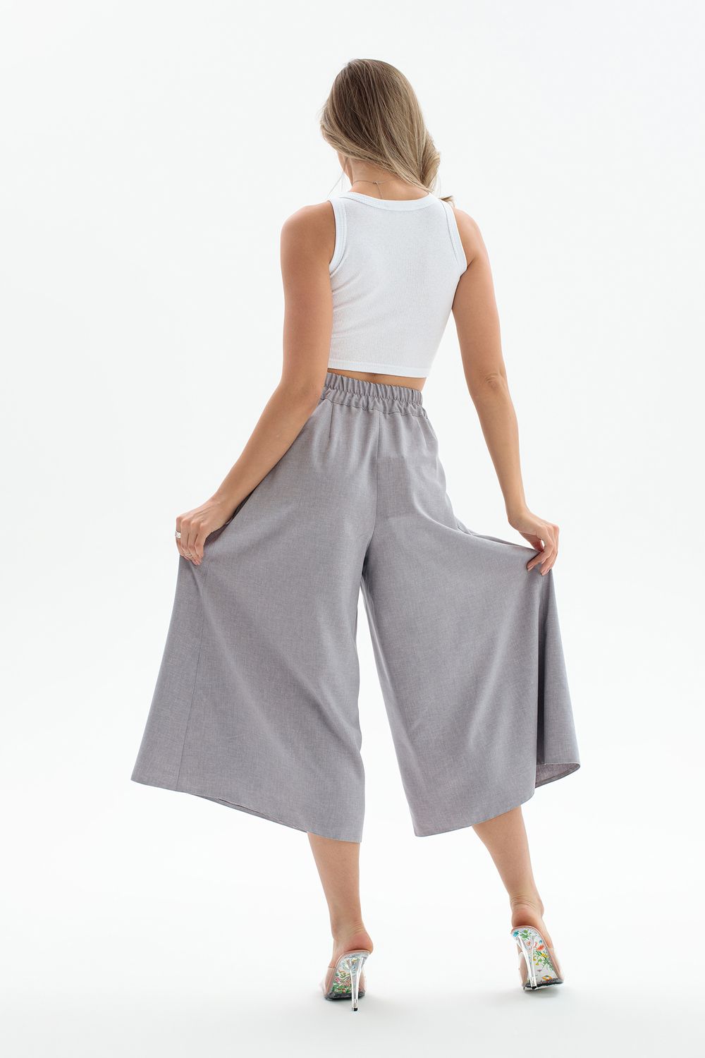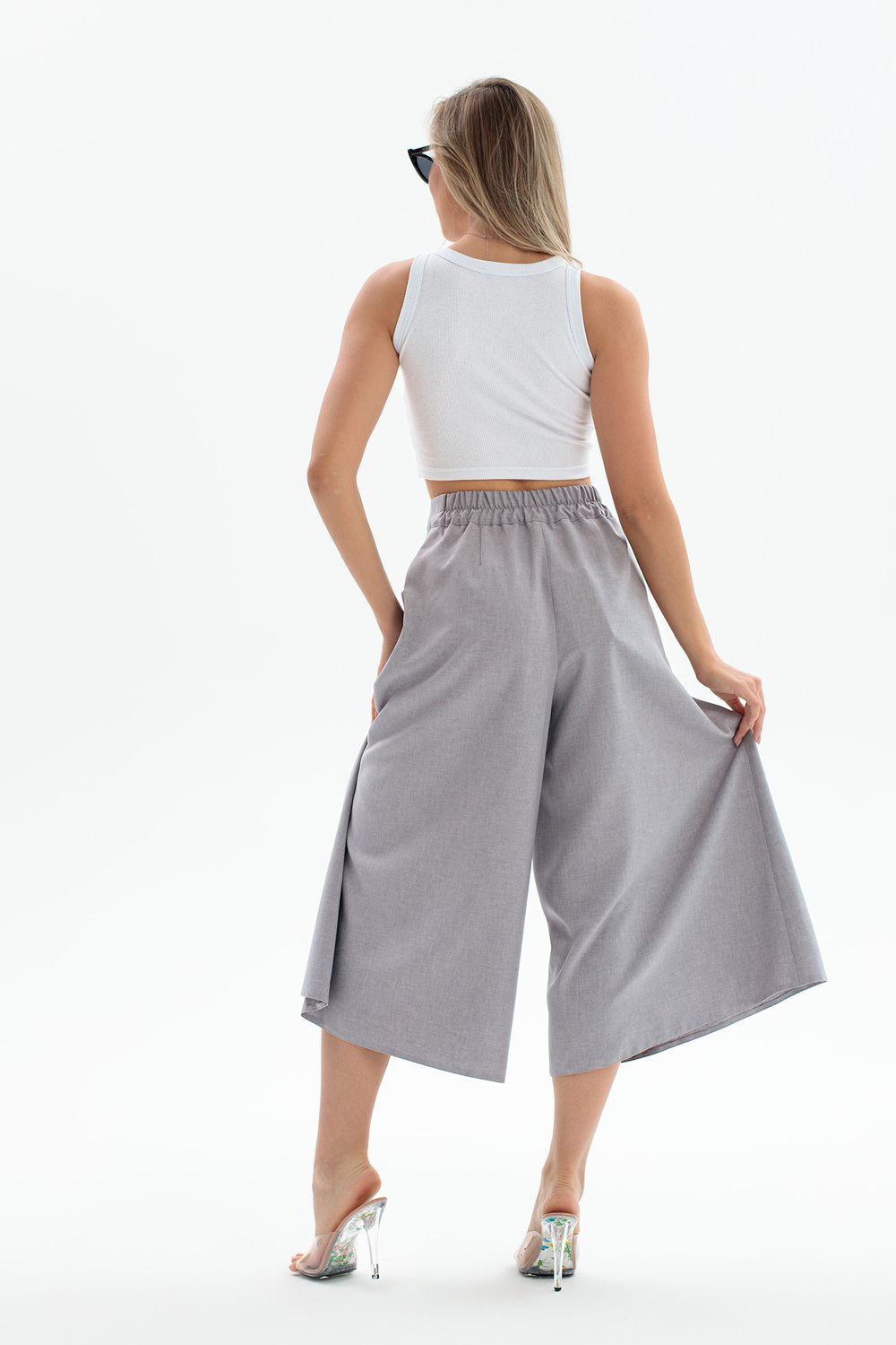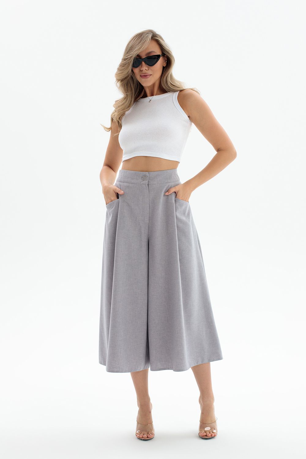 Укороченные широкие брюки - кюлоты с карманами и резинкой на талии подойдут женщинам любой комплекции и возраста. Комбинируя с различным верхом и обувью можно кардинально менять образ от строгого делового до расслаблено неформального.