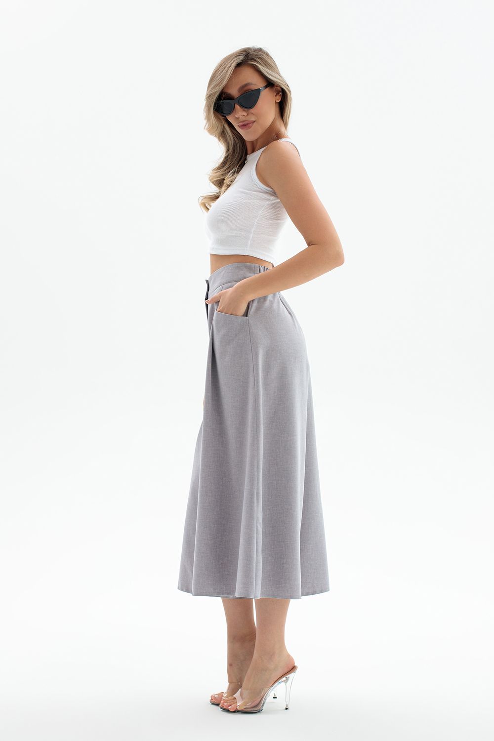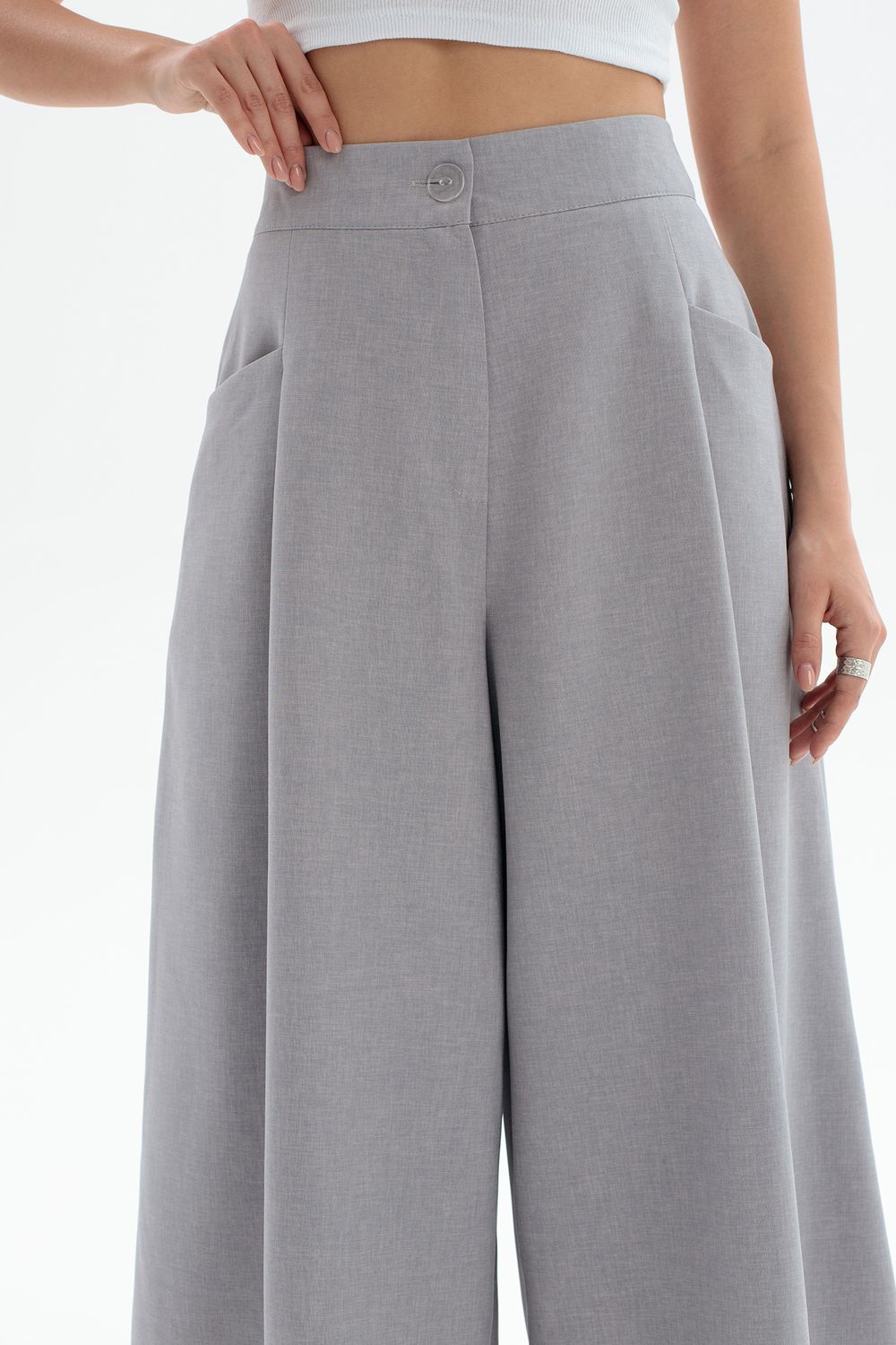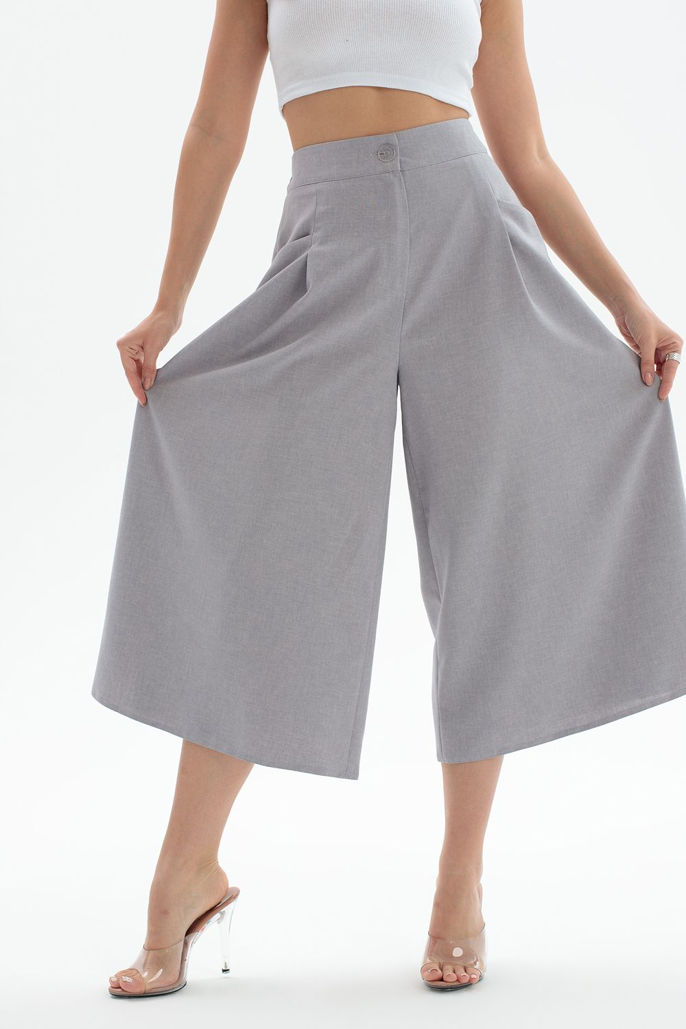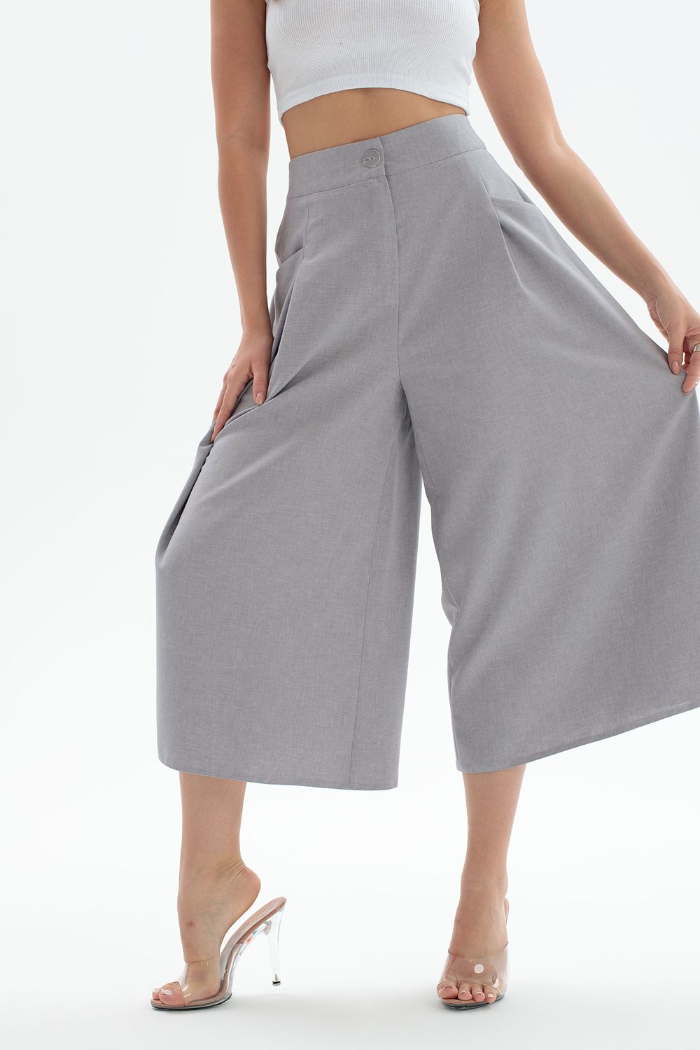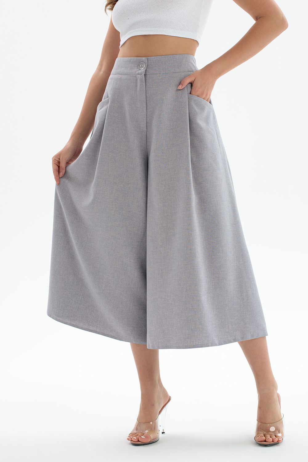 Укороченные широкие брюки - кюлоты с карманами и резинкой на талии подойдут женщинам любой комплекции и возраста. Комбинируя с различным верхом и обувью можно кардинально менять образ от строгого делового до расслаблено неформального.