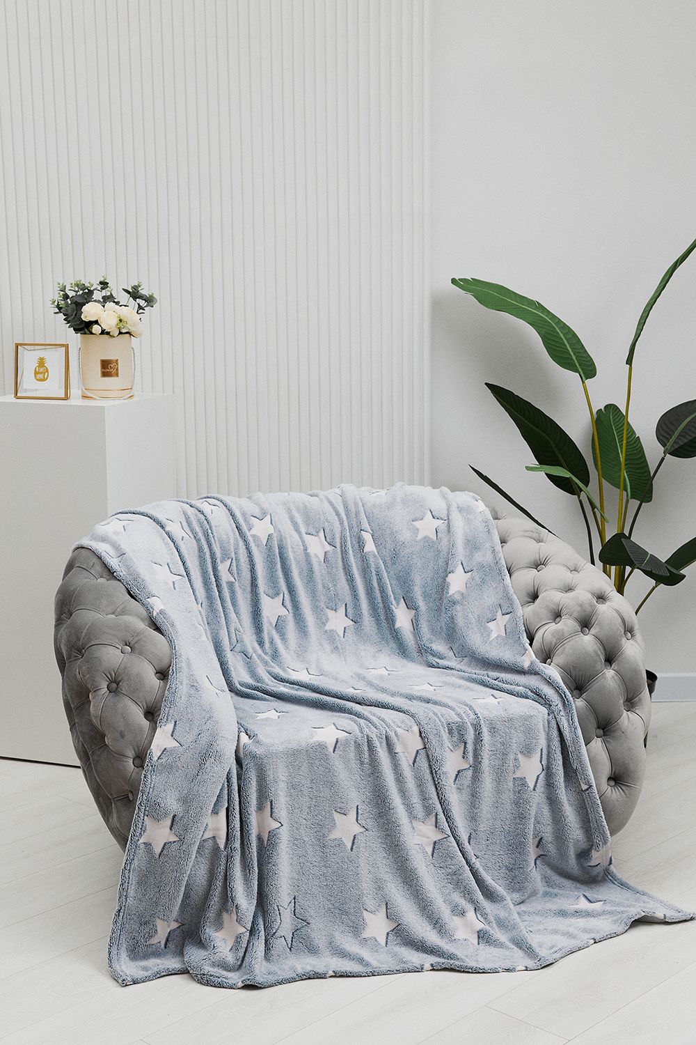 Плед велсофт 1P-179 ЗВЕЗДЫ - серый