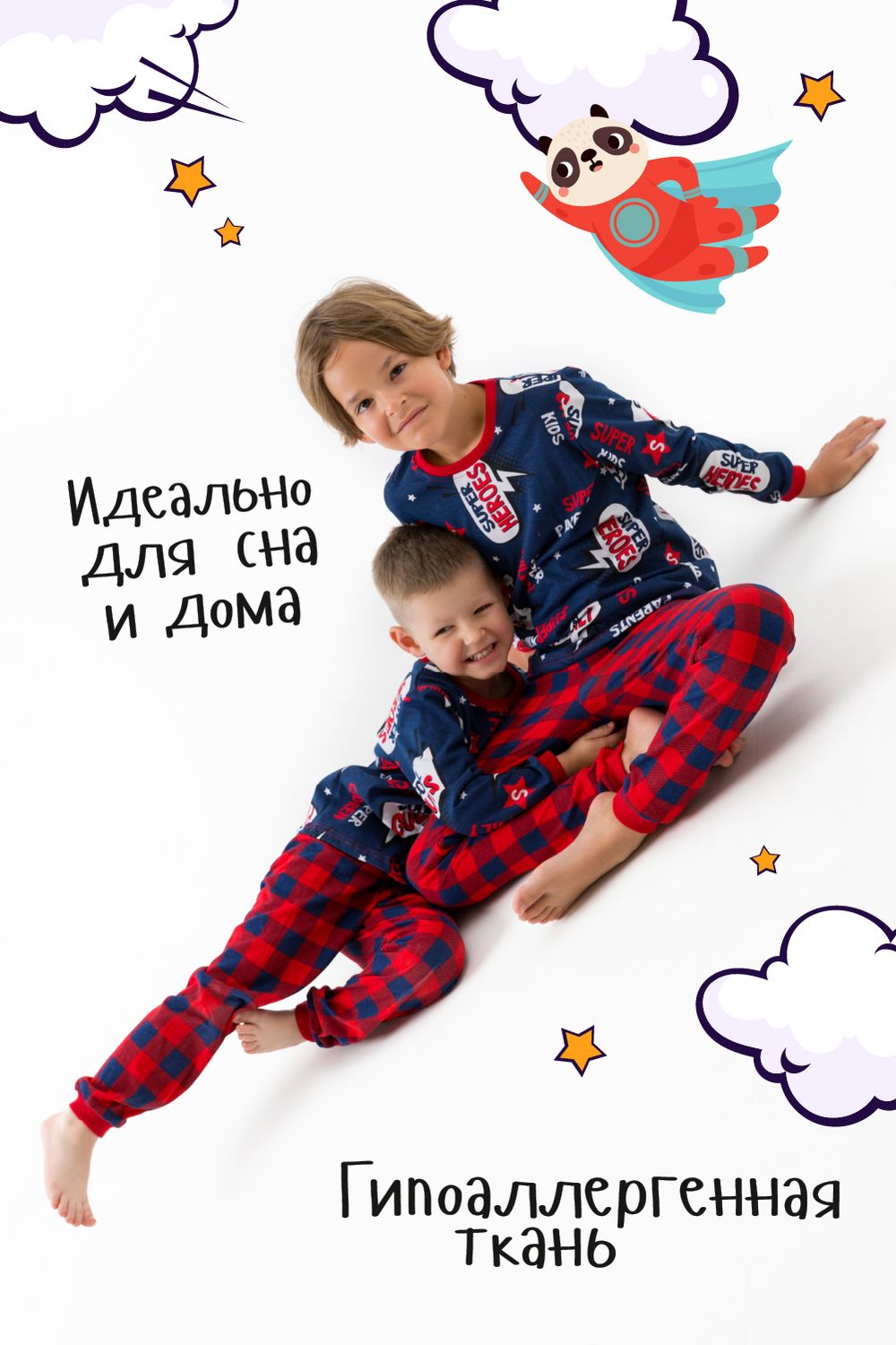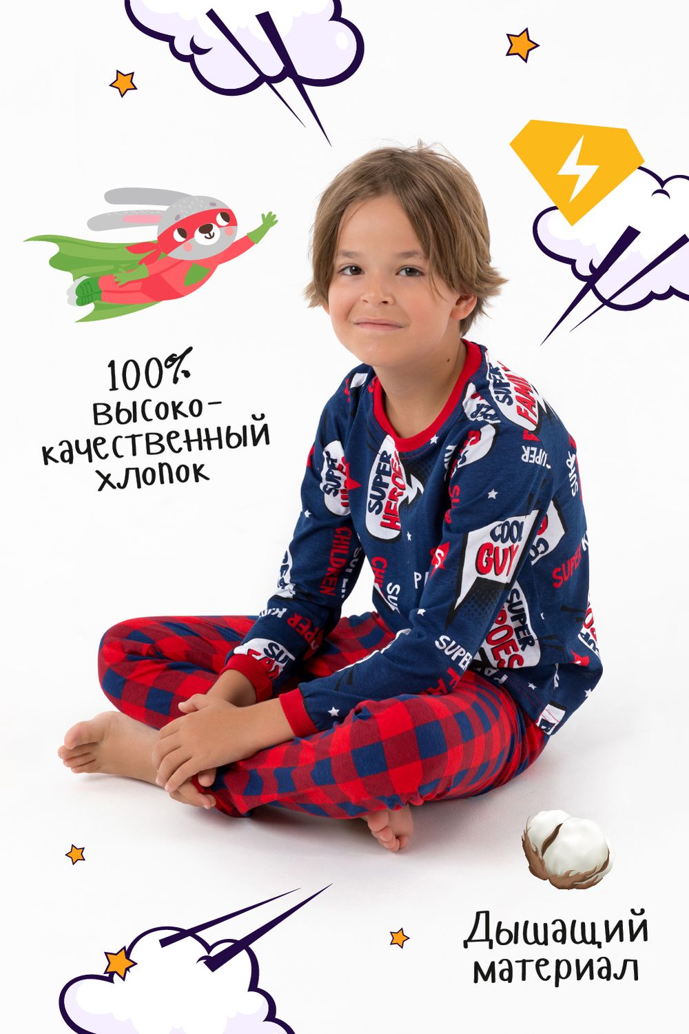 Детская пижама из 100% хлопка в ярких тонах со стильными принтами. Длинный рукав.