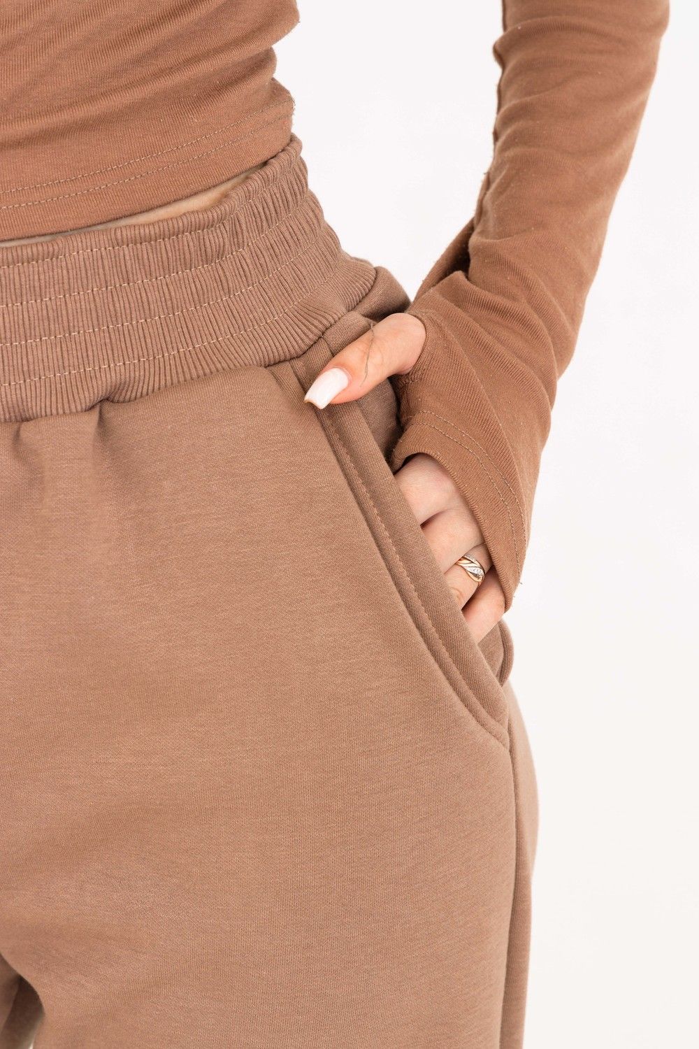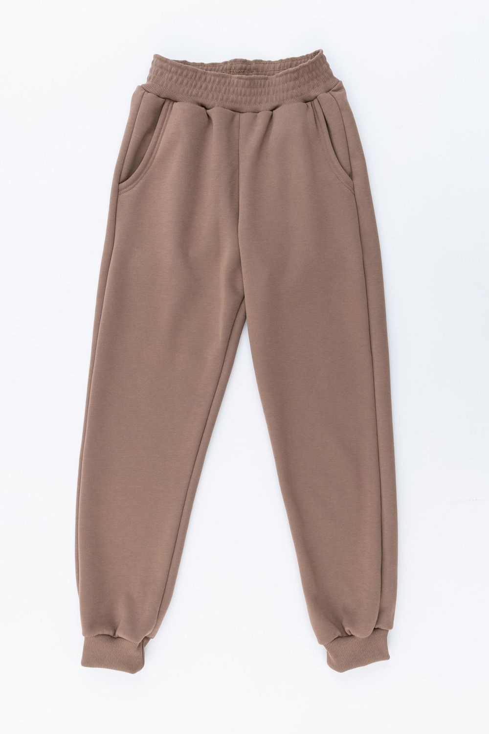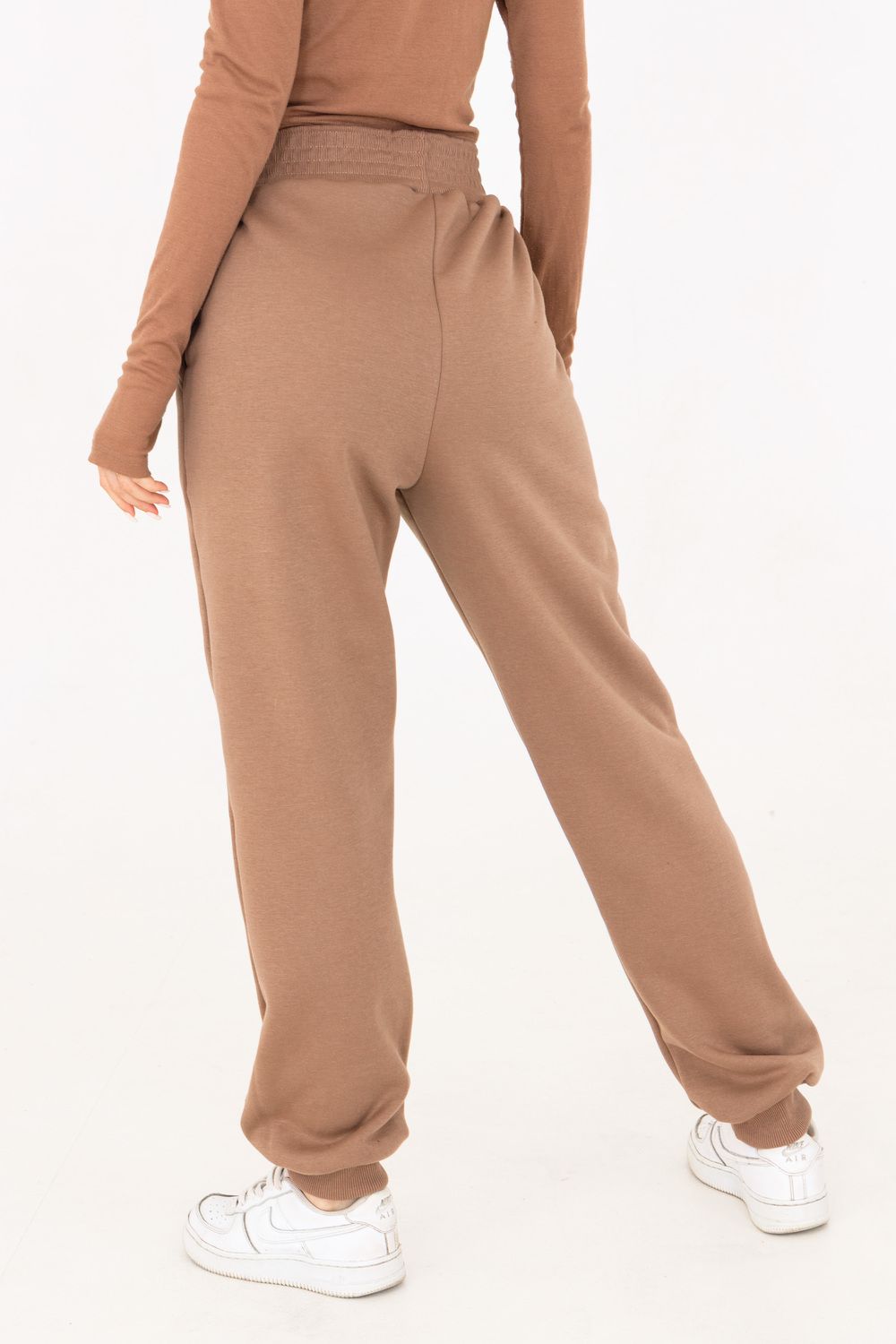 Брюки-джоггеры изготовлены из шикарной ткани интерсофт с начёсом "барашек". Плотность 320 гр. В отличие от ткани футер 3-нитка начёс не осыпается и не пиллингуется. Ткань плотная, упругая, мягкая, одна из толстых и тёплых видов трикотажа в своей группе. Начёс ткани обработан специально в виде барашка. Очень красивый и приятный к телу. Ткань двухсторонняя - интерлок пенье плюс флис. Джоггеры с высокой талией, прямого свободного кроя, слегка зауженные к низу. Имеют внутренние карманы. Пояс обработан на поясной машине, поэтому резинка не скручивается при эксплуатации. Нижняя часть брюк и пояс изготовлены из очень качественной резинки-кашкорсе в цвет основной ткани. В измерениях обхвата талии указан размер резинки, которая без проблем растягивается до стандартных значений фигуры. Носите с удовольствием! В комплект к брюкам можно приобрести толстовку 21562; продается отдельно