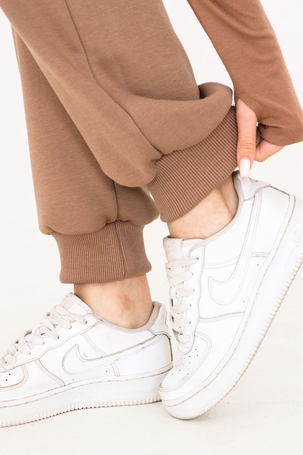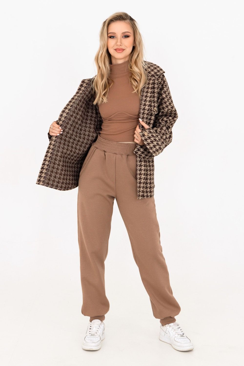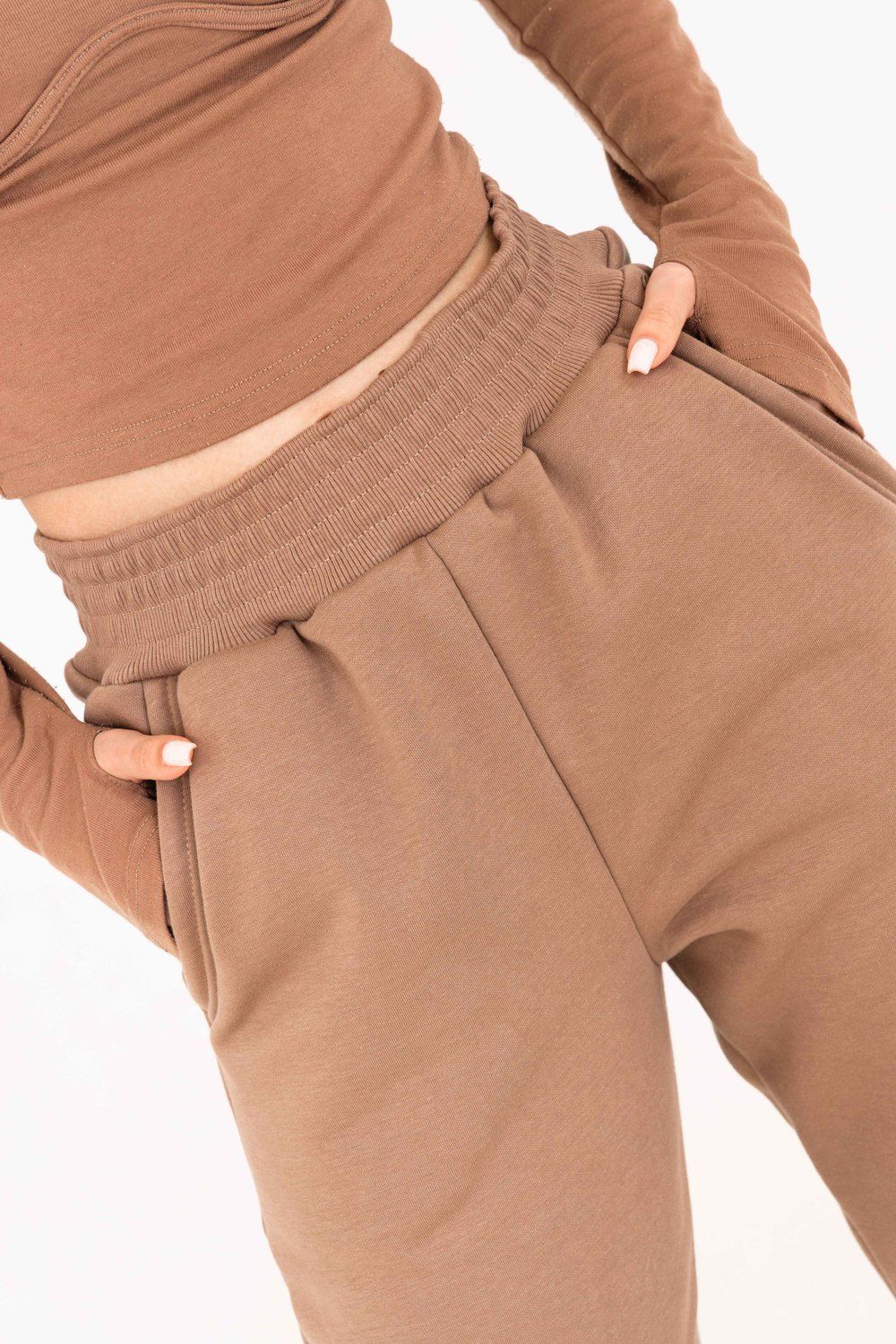Брюки-джоггеры изготовлены из шикарной ткани интерсофт с начёсом "барашек". Плотность 320 гр. В отличие от ткани футер 3-нитка начёс не осыпается и не пиллингуется. Ткань плотная, упругая, мягкая, одна из толстых и тёплых видов трикотажа в своей группе. Начёс ткани обработан специально в виде барашка. Очень красивый и приятный к телу. Ткань двухсторонняя - интерлок пенье плюс флис. Джоггеры с высокой талией, прямого свободного кроя, слегка зауженные к низу. Имеют внутренние карманы. Пояс обработан на поясной машине, поэтому резинка не скручивается при эксплуатации. Нижняя часть брюк и пояс изготовлены из очень качественной резинки-кашкорсе в цвет основной ткани. В измерениях обхвата талии указан размер резинки, которая без проблем растягивается до стандартных значений фигуры. Носите с удовольствием! В комплект к брюкам можно приобрести толстовку 21562; продается отдельно