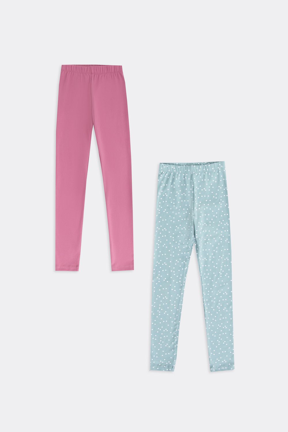 Леггинсы для девочек (пара) 147719-2 - горошек на шалфее+пыльная роза
