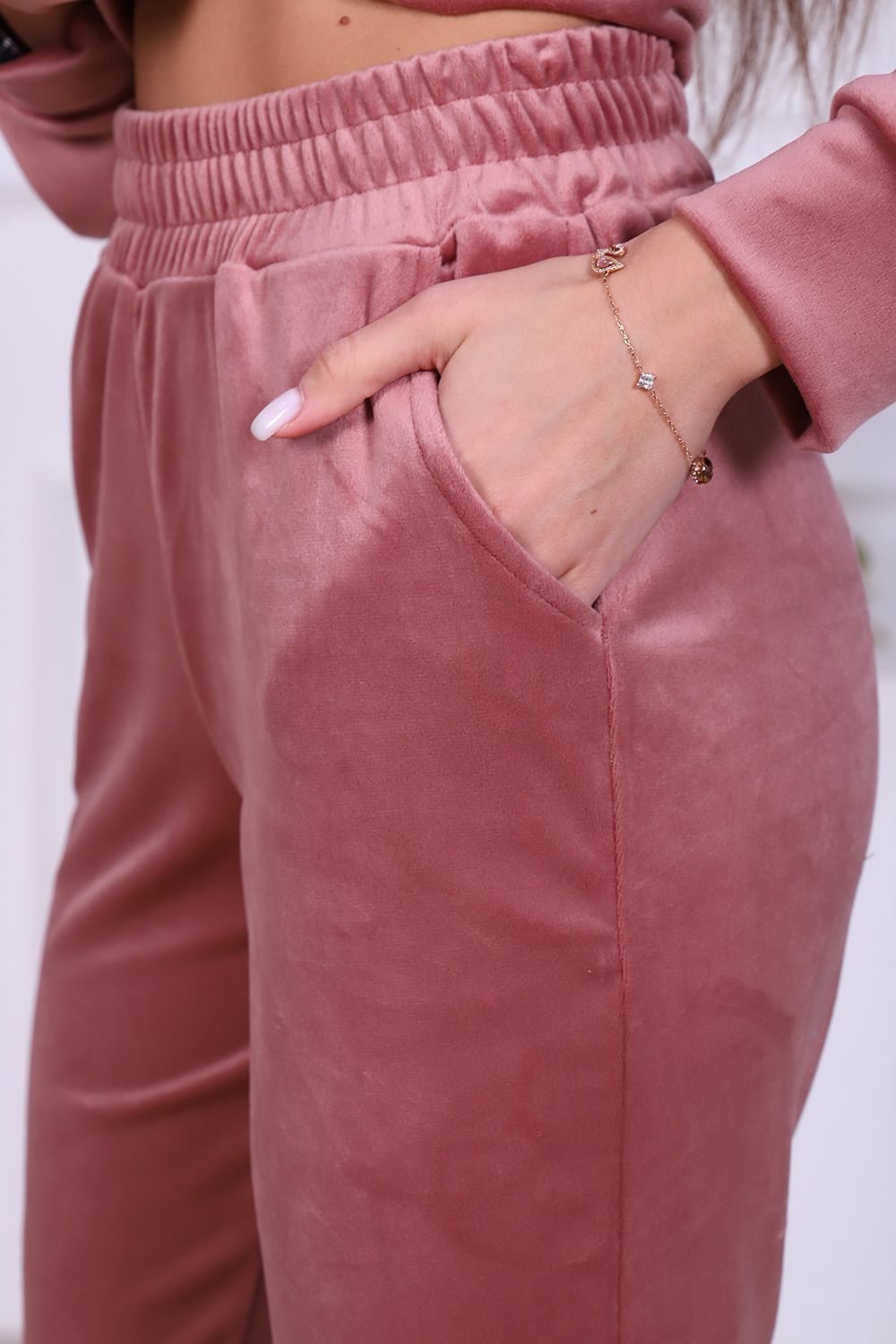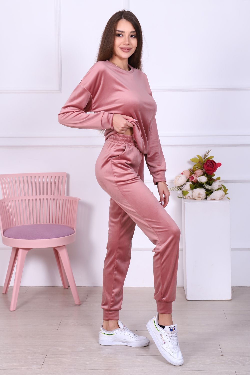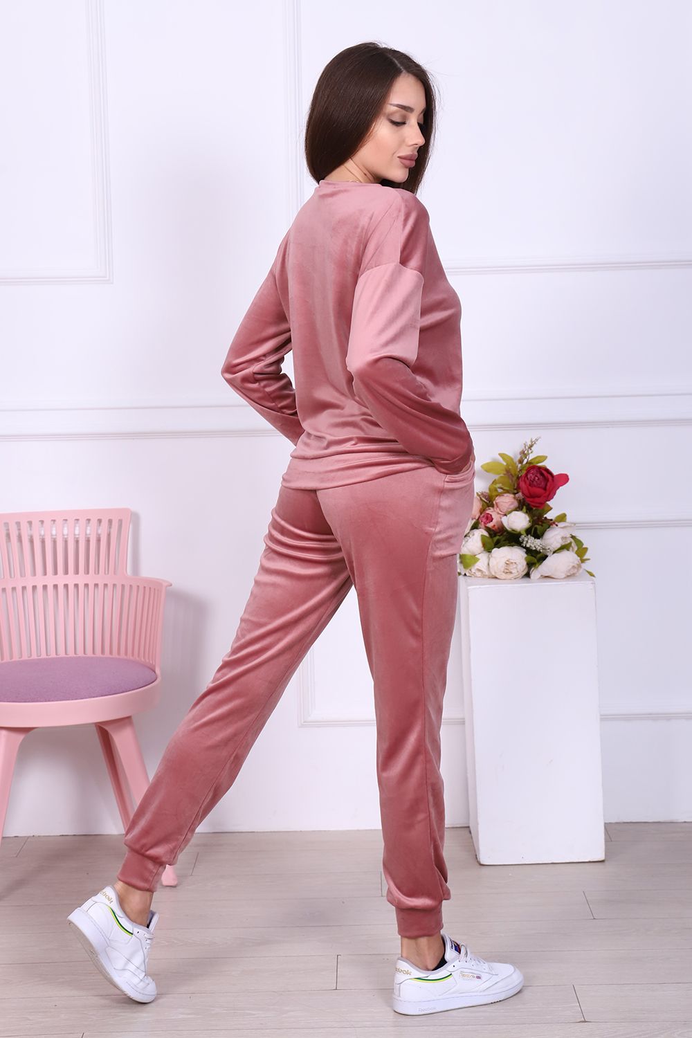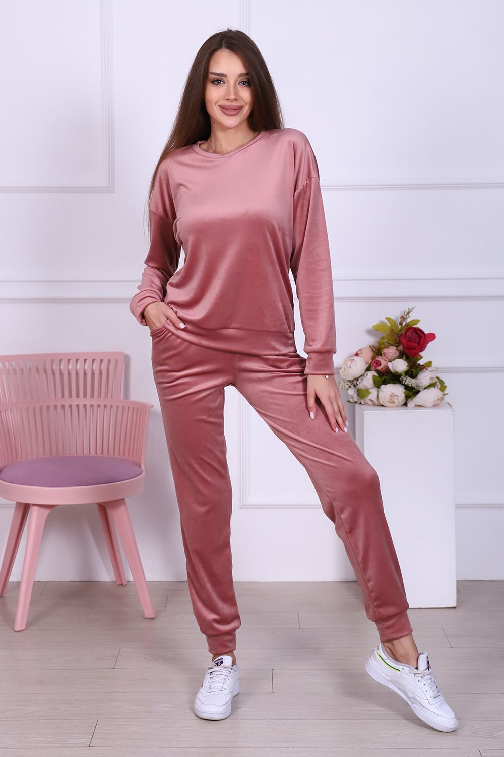Женский домашний костюм, состоящий из джемпера с длинным рукавом и брюк. Брюки с карманами в боковых швах со скошенным входом для удобства, с широким притачным поясом на резинке, отделан декоративной отстрочкой. Низ брюк на притачной манжете из основной ткани. Джемпер свободного покроя с округлой горловиной чуть зауженный внизу манжетой за счет небольшой сборки. Рукав втачной, низ рукава на притачной манжете шириной 6 см. Костюм выполнен из нежной на ощупь бархатной ткани - иконвелюра, который переливается на свету и очень приятен на ощупь. Изделие не мнется, не требует глажки, что очень удобно в использовании. Можно носить дома, как домашний комплект, как пижаму для сна, а также на выход, как костюм для прогулок в холодное время года, как спортивный костюм, на дачу, для школы и т. д. Большой выбор нежных и насыщенных расцветок на любой вкус! Отличный подарок самым любимым!