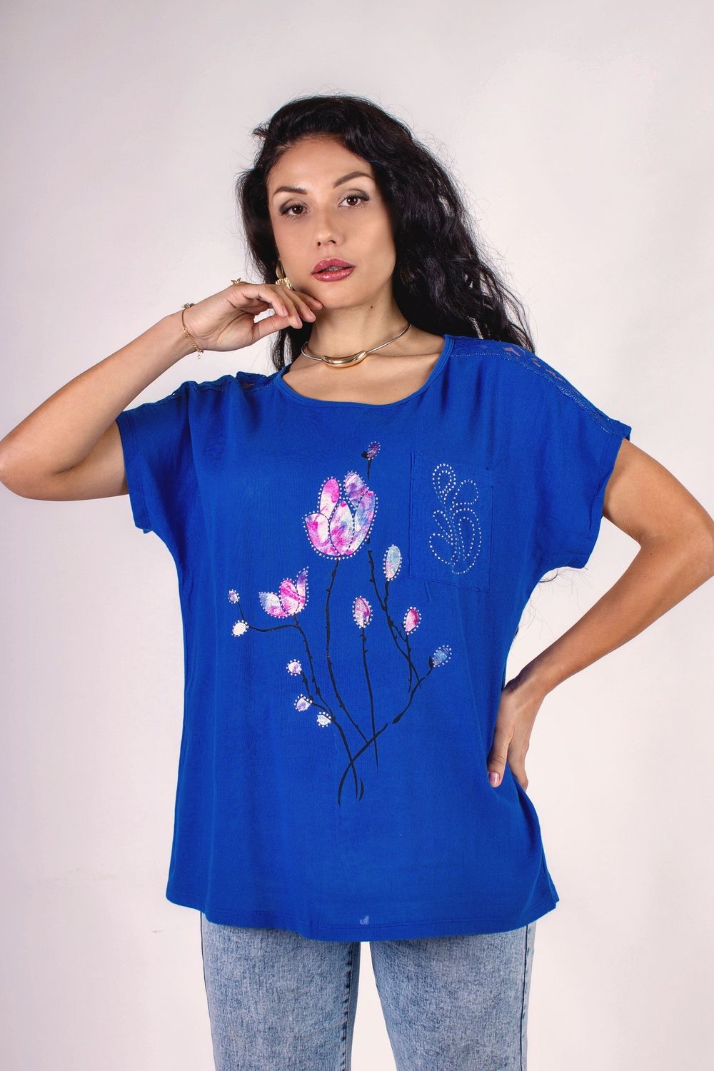 Рост модели на фото: 175 см, размер: 46-48. На ней представлена блуза в размере 50-52.