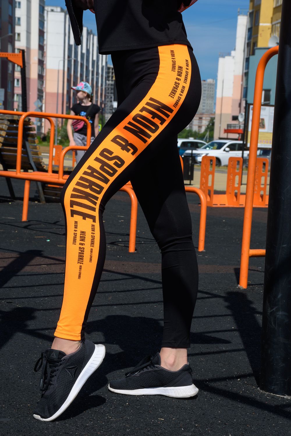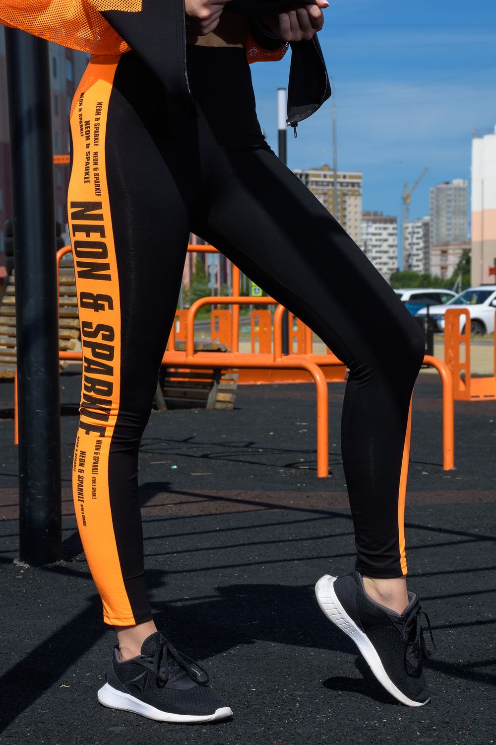 Лосины облегающие, длинные, сверху на резинке. Вдоль боковых швов расположен лампас из отделочного полотна.