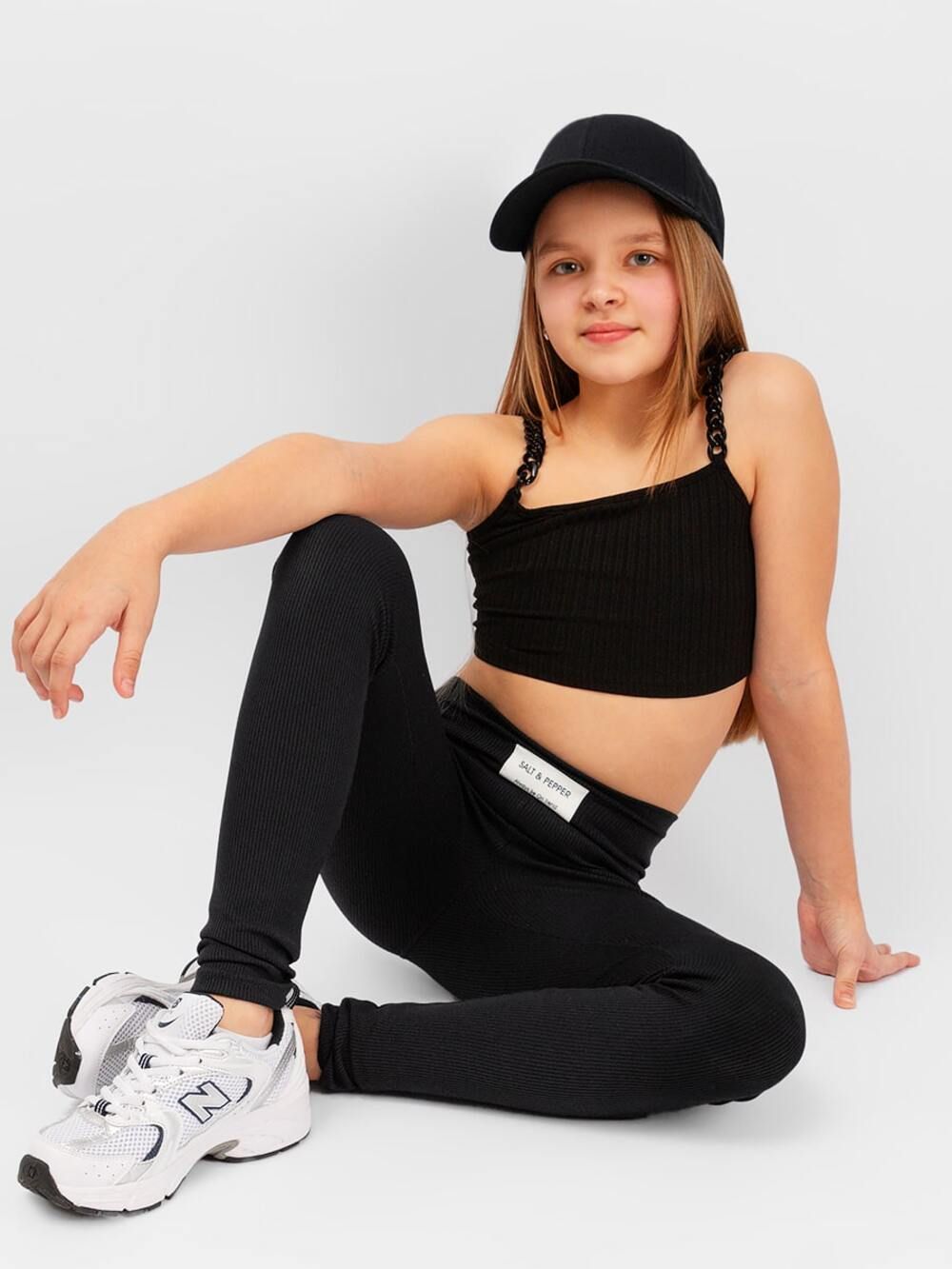 Лосины для девочки Соль&Перец. Идеальная посадка, мягкая дышащая ткань создают комфорт и удобство. Ткань в рубчик, хорошо тянется, что обеспечивает полное прилегание к телу, позволяет заниматься любым видом активности.