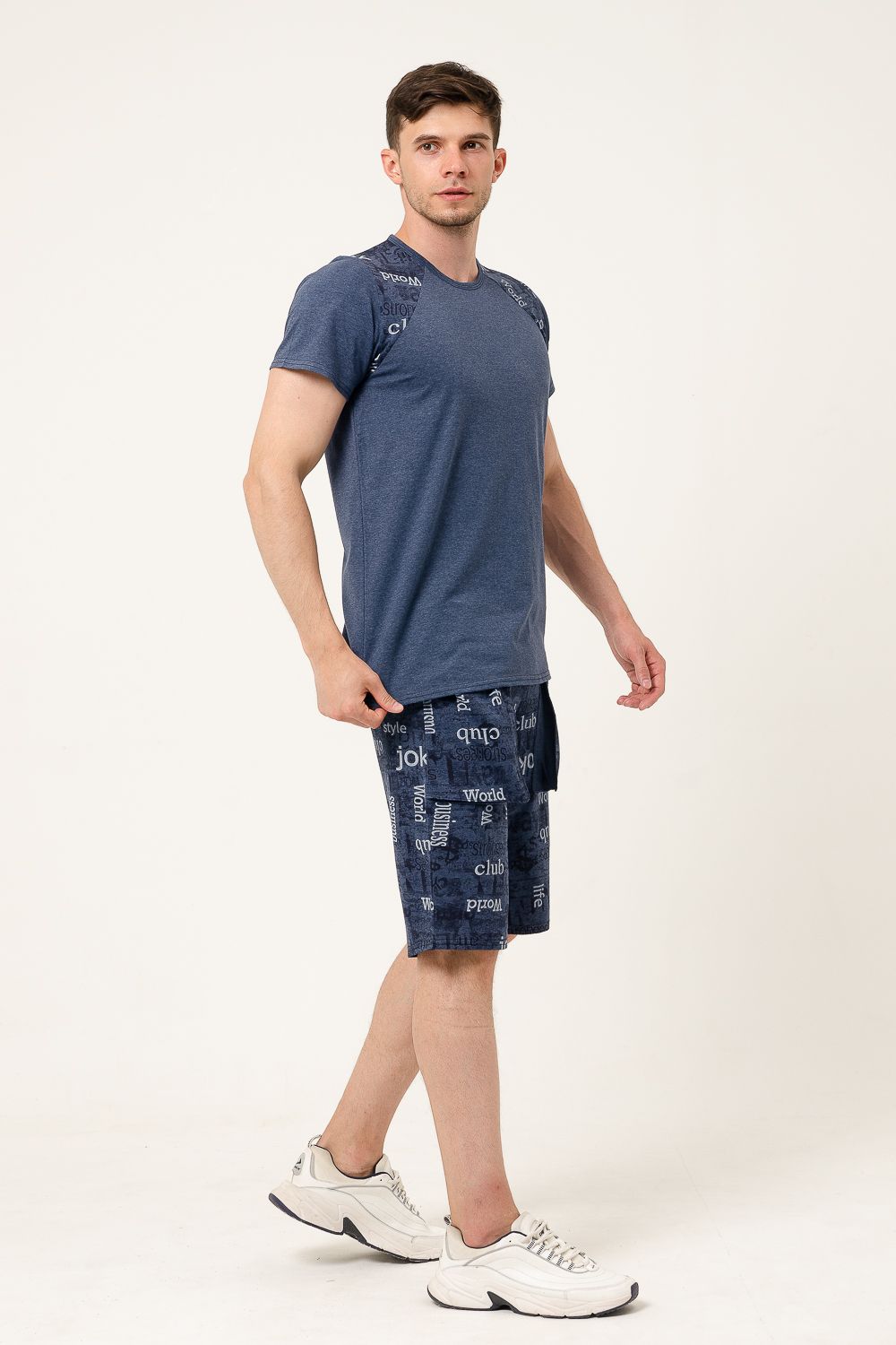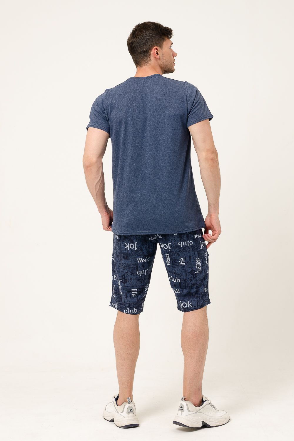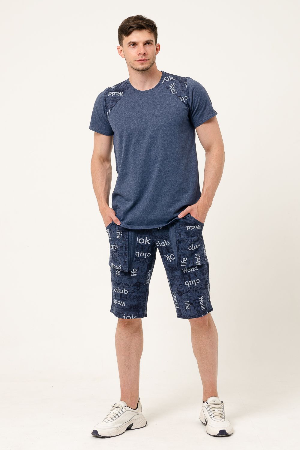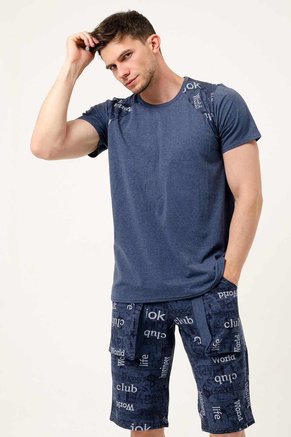 Мужской костюм состоит из футболки и бриджей. Оригинальные бриджи с карманами прекрасно пропускают воздух и очень приятны к телу.