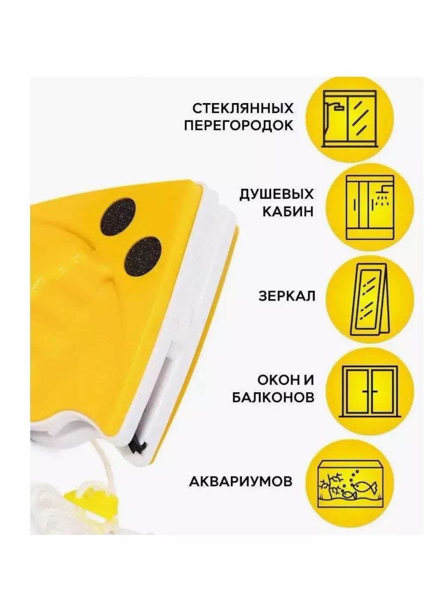 Магнитная щетка для стекол входит в топ современных изобретений, которые облегчают уборку и делают ее удобнее и быстрее. Магнитная щетка для мытья окон - это две накладки с магнитами и чистящей поверхностью с удобной ручкой и веревкой, что делает уборку дома ещё более комфортной и вы без труда сможете вымыть окно сразу с двух сторон. Грязь собирается на рабочих поверхностях щетки, и окна становятся идеально чистыми. Больше не нужно высовываться из окна, приглашать клининг или придумывать сложные конструкции из товаров для уборки, чтобы промыть стекло со стороны улицы. Магнитная окномойка-щётка-скребок имеет две накладки в форме угла, созданные для очистки и уборки всех видов одинарных стекол и других материалов. Будь то зеркала, пластиковые стеклопакеты, ванная, балкон или стеклянная витрина. Стекло не царапается, пена распределяется равномерно, устройство защищено от падения шнуром, который надевается на запястье руки. Щетка с магнитами не представляет из себя сложного устройства, но как мы знаем, все гениальное - просто!