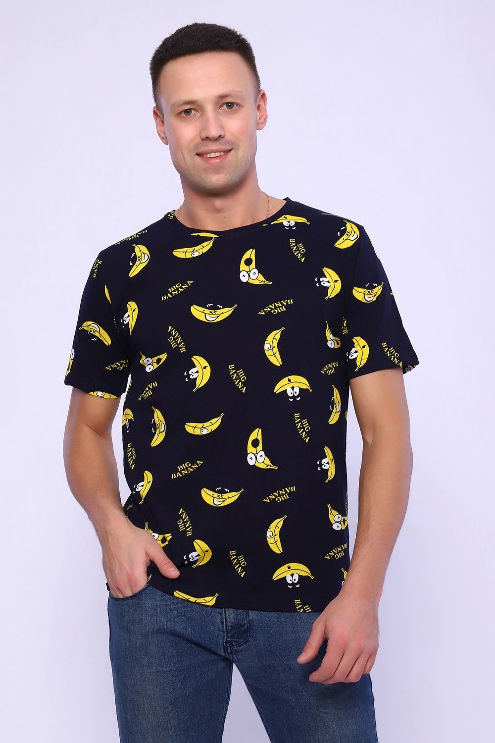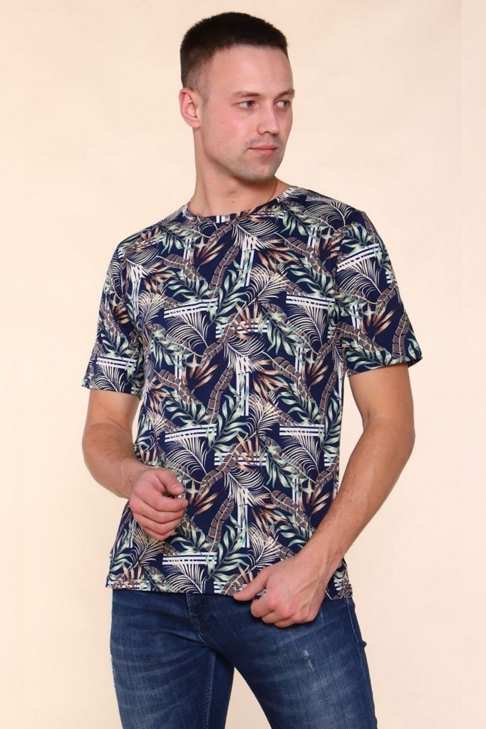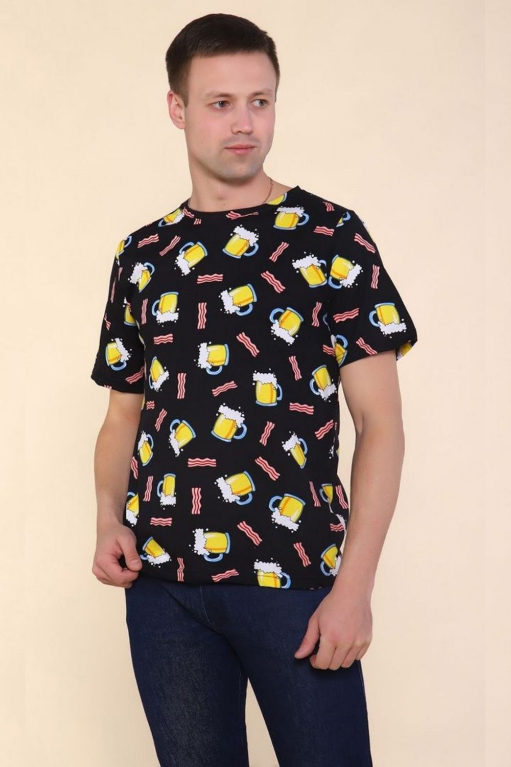 Футболка мужская с молодёжным принтом из мягкого хлопкового трикотажа. Футболка прямого кроя, круглая горловина обработана эластичной рибаной, втачной короткий рукав.