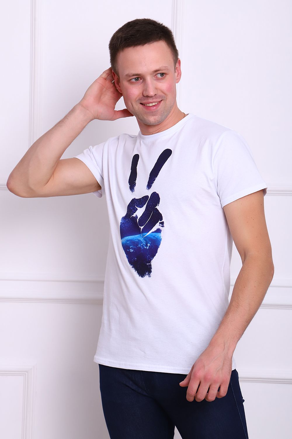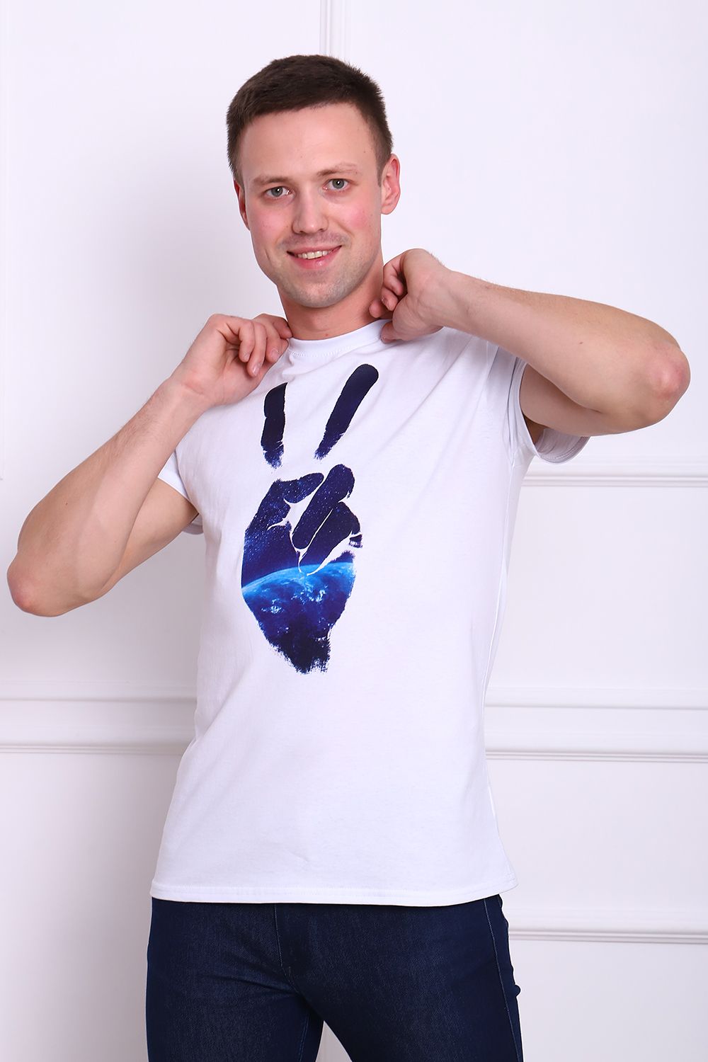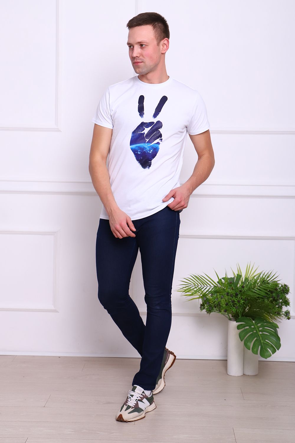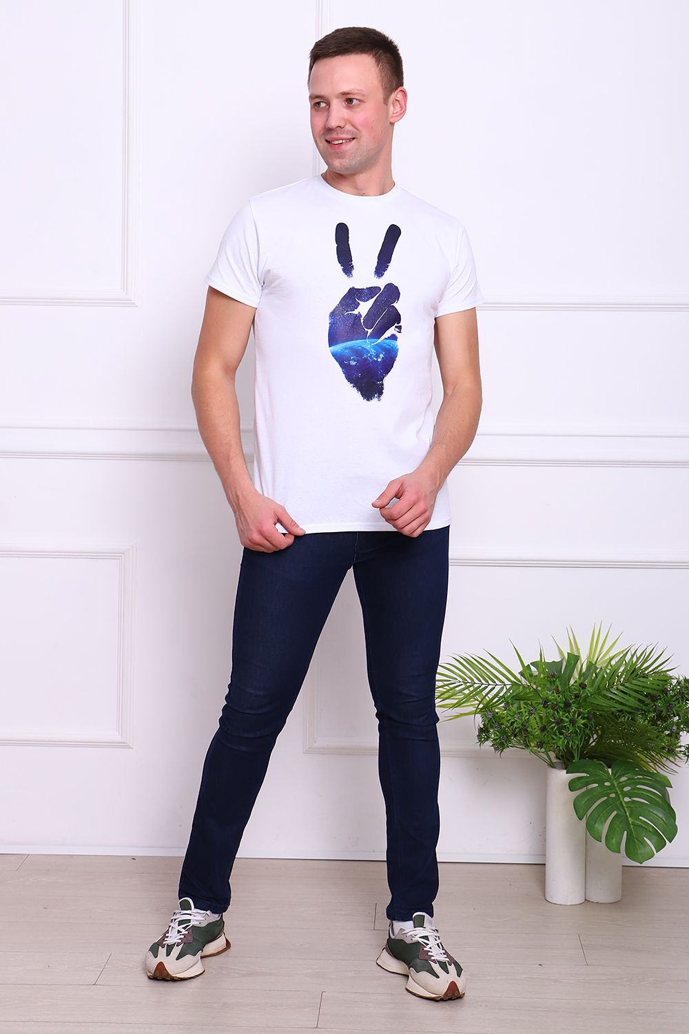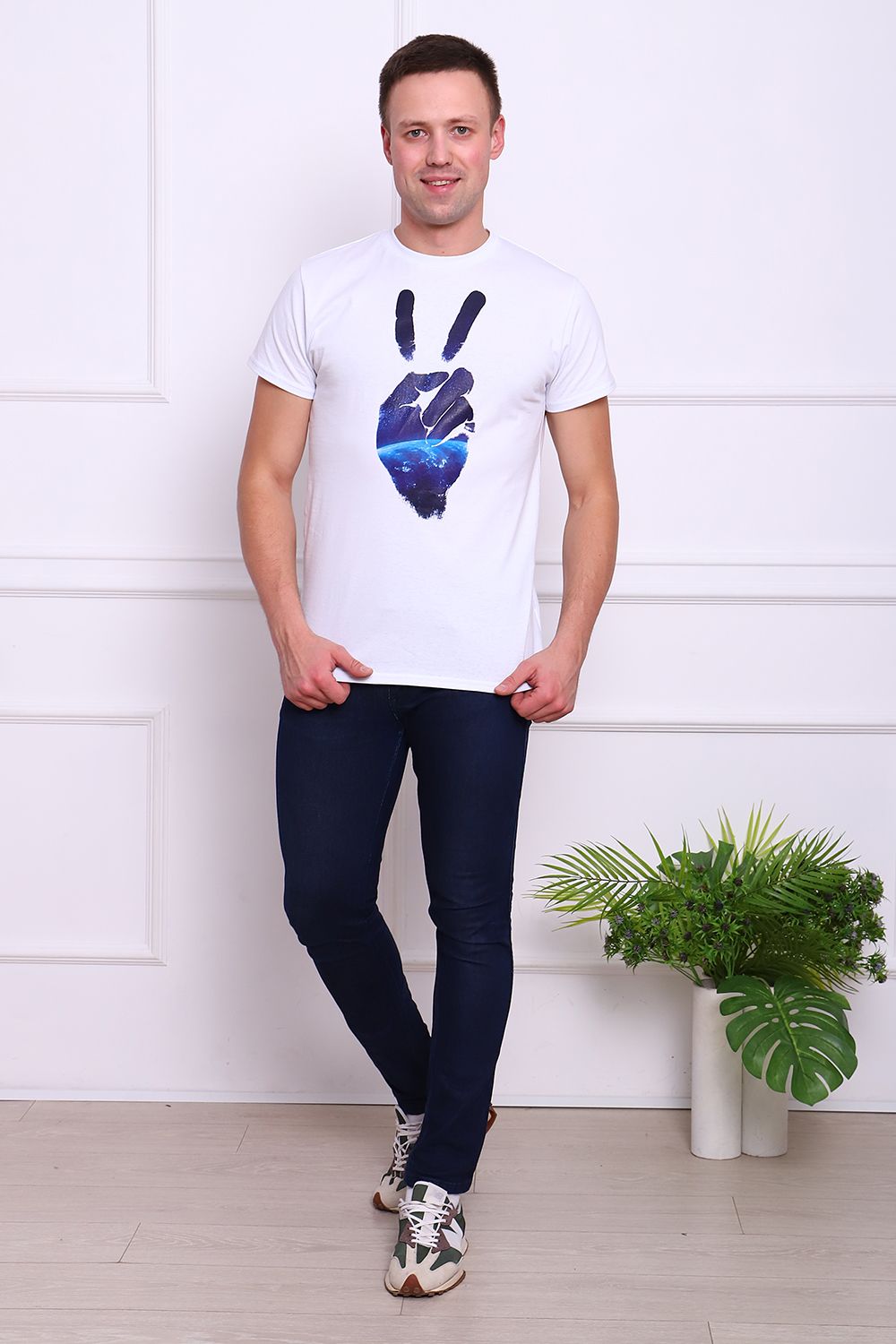 Футболка мужская с молодёжным принтом из мягкого хлопкового трикотажа. Футболка прямого кроя, круглая горловина обработана эластичной рибаной, втачной короткий рукав.
