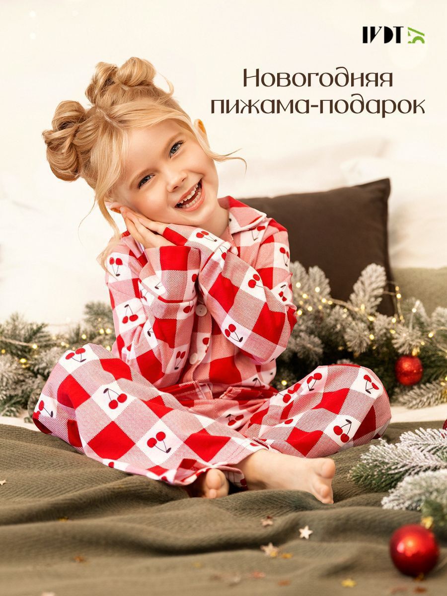 Стильная детская пижама из мягкого хлопка с узором в красно-белую клетку и вишенками. Натуральная ткань приятна к телу, не вызывает раздражения. Классический крой на пуговицах и свободные брюки обеспечивают комфорт и уютный сон каждый день.