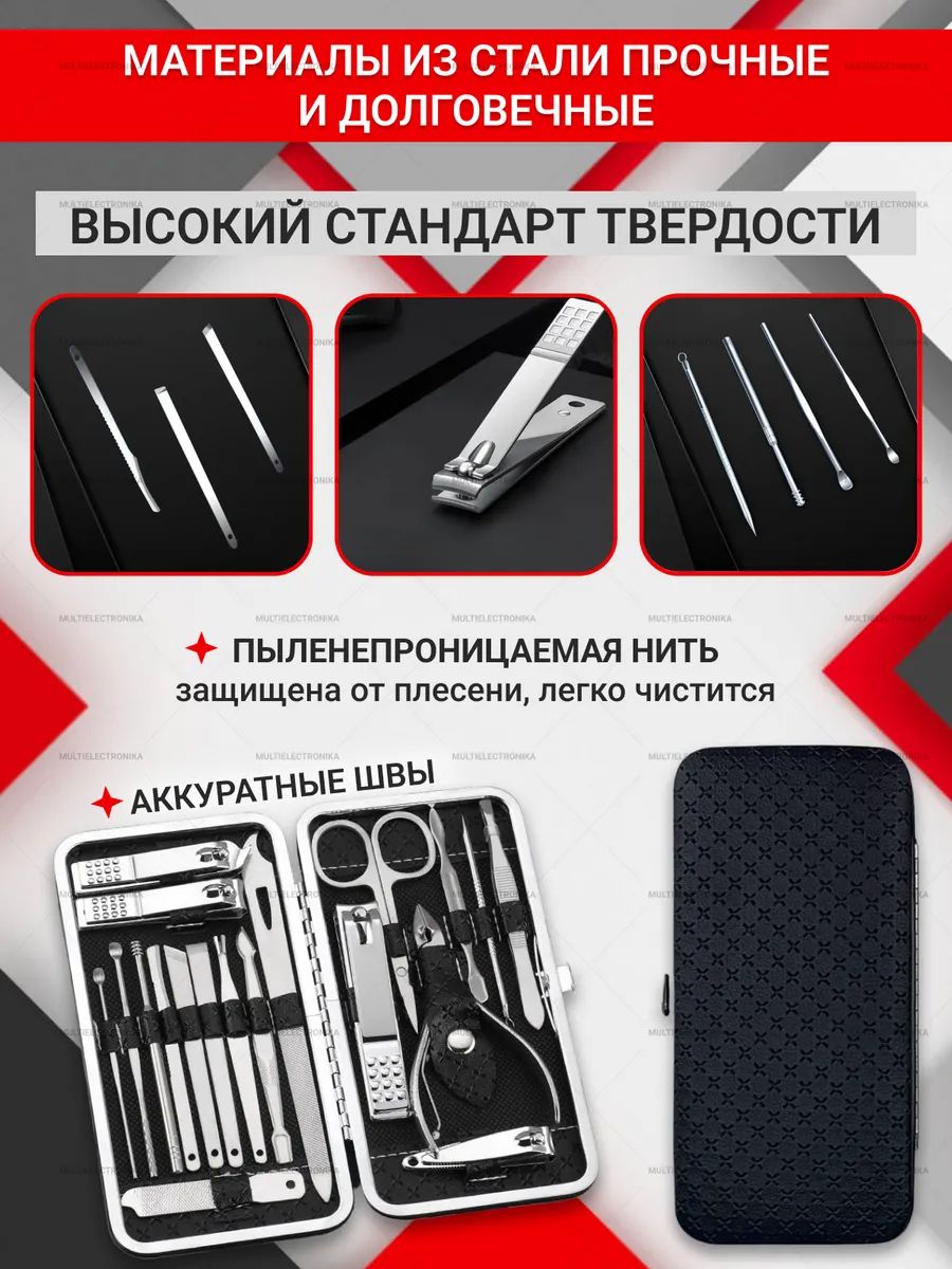 Подарочный маникюрный набор - идеальный подарок для всех любителей красоты и ухода за ногтями. Набор включает в себя все необходимые инструменты для профессионального маникюра и педикюра, а также дизайна ногтей. В состав набора входят: профессиональные ножницы и пилка для снятия длинных ногтей, кутикулы и органайзер для удобного хранения инструментов. Также в наборе имеются специальные палочки для чистки ушей и инструменты для придания ногтям оригинальной формы. Набор представлен в различных цветах: красный, черный, голубой, серый, бежевый. Для удобства хранения и транспортировки набор поставляется в специальном чехле или контейнере. Это делает его идеальным для путешествий или использования дома.