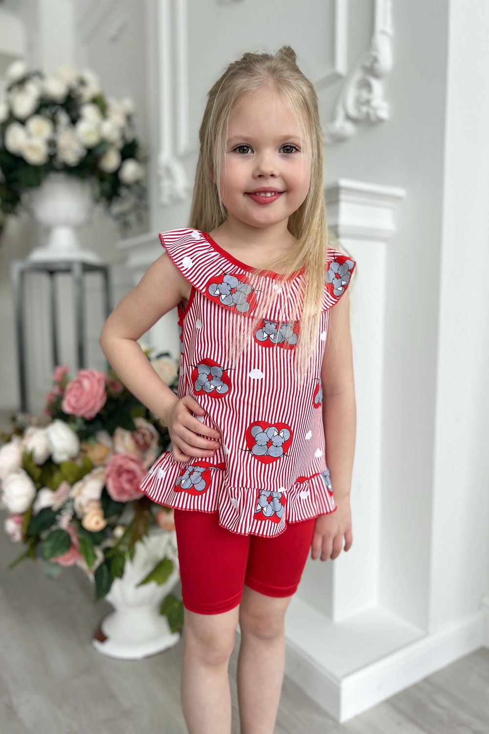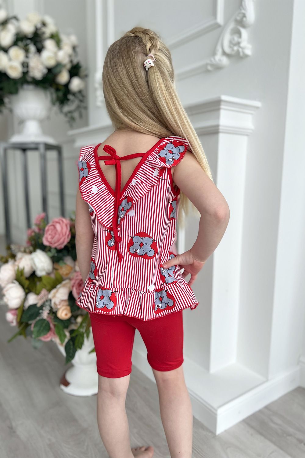 Маечка для девочки, по горловине и низу изделия оборка, на спинке завязки.
