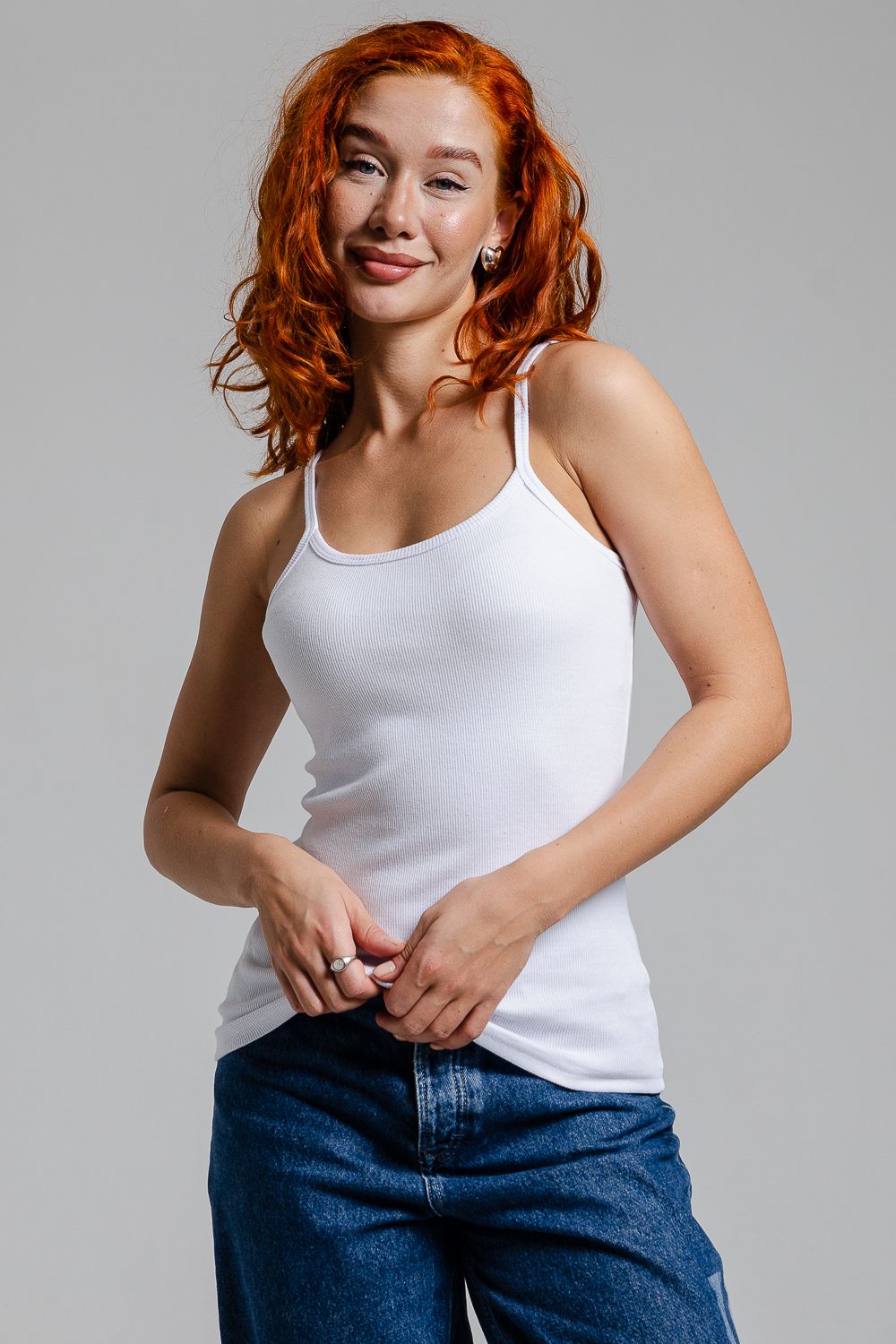 Трикотажная стильная майка из мягкого хлопка в рубчик. Содержит в себе хлопок и лайкру, изделия из такой ткани служат больше. Модная элегантная майка с квадратным вырезом идеально сочетается с джинсами жакетами и шортами. А небольшое количество эластана позволяет футболке сесть по фигуре.