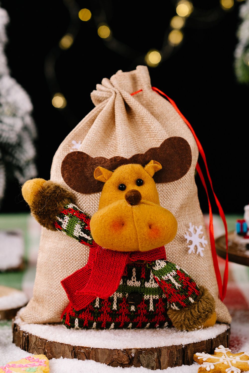 Затягивается мешок двойным шнуром, что обеспечивает надёжную фиксацию подарков. Отличный выбор для семейных подарков, корпоративных наборов и праздничного декора. Мешок — не просто упаковка: он сам по себе становится частью подарка и может использоваться снова и снова.