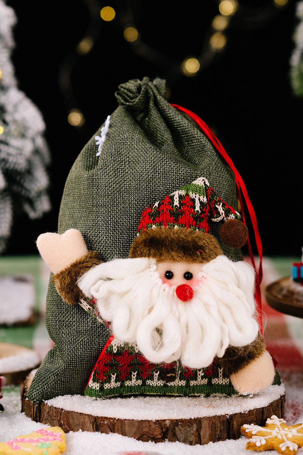 Этот новогодний мешок сочетает практичность и праздничную эстетику. Внешняя часть выполнена из плотной ткани — натуральной или смесовой — устойчивой к износу. Аппликация из фетра выполнена слоями, имеет контрастные детали, декоративную строчку и некоторые объёмные элементы (помпон, хвостик, борода у Деда Мороза), что делает каждую модель эффектной и тактильно приятной.