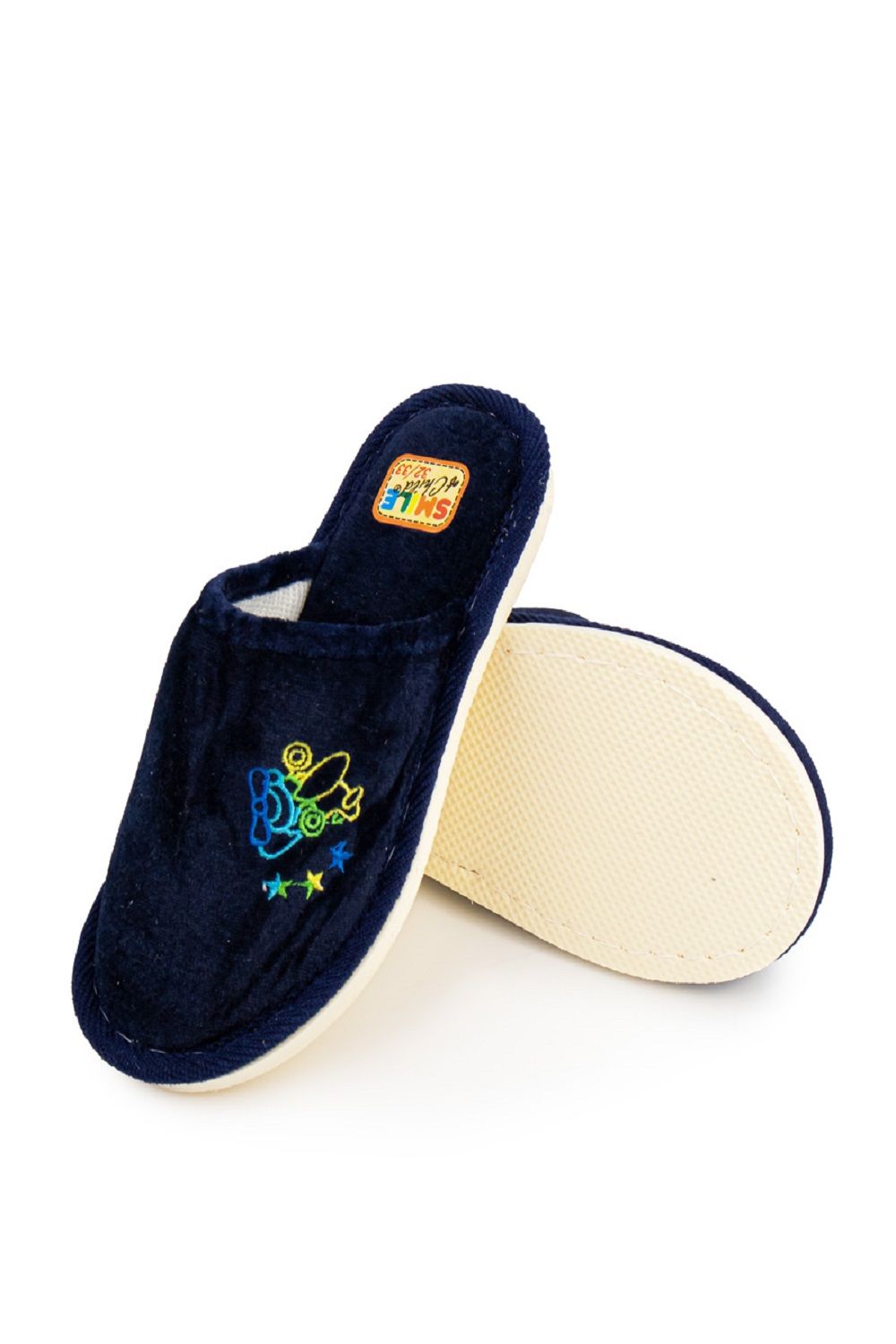 Домашние детские тапочки марки Smile of milady закрытого типа. Верх и стельки выполнены из мягкого приятного на ощупь текстиля. Легкая подошва, выполненная из экологического материала ЭВА, принимает форму стопы и амортизирует при ходьбе, вследствие чего ноги меньше устают, ходить удобнее и более комфортно. Подошва прошита и имеет противоскользящее покрытие. Данная модель представлена в двух цветовых тонах: темно-синий и голубой.