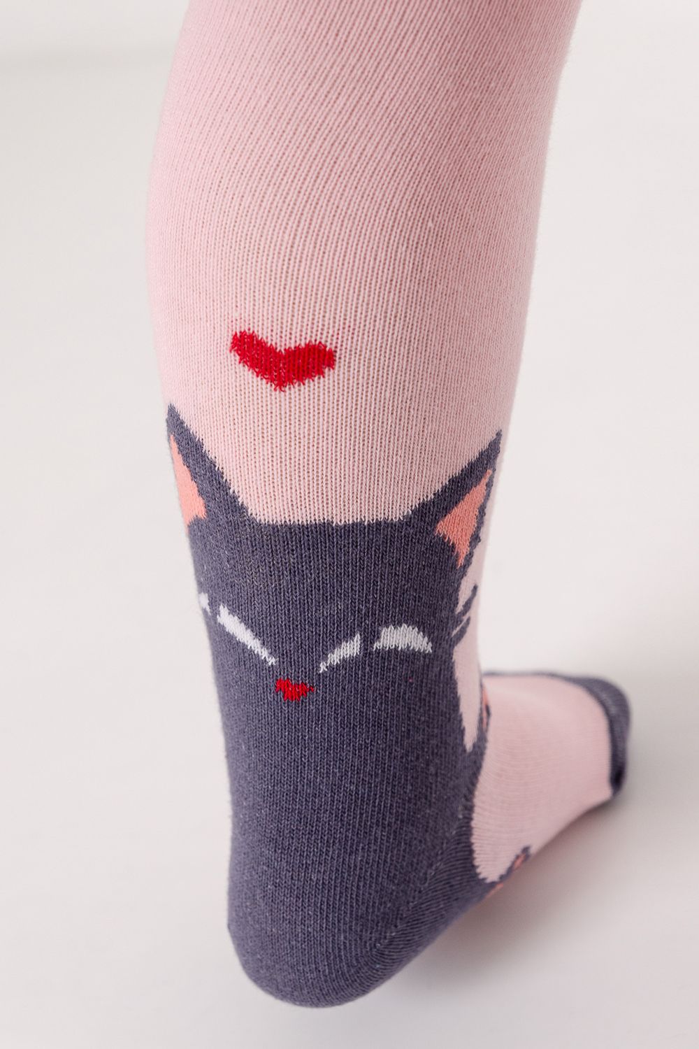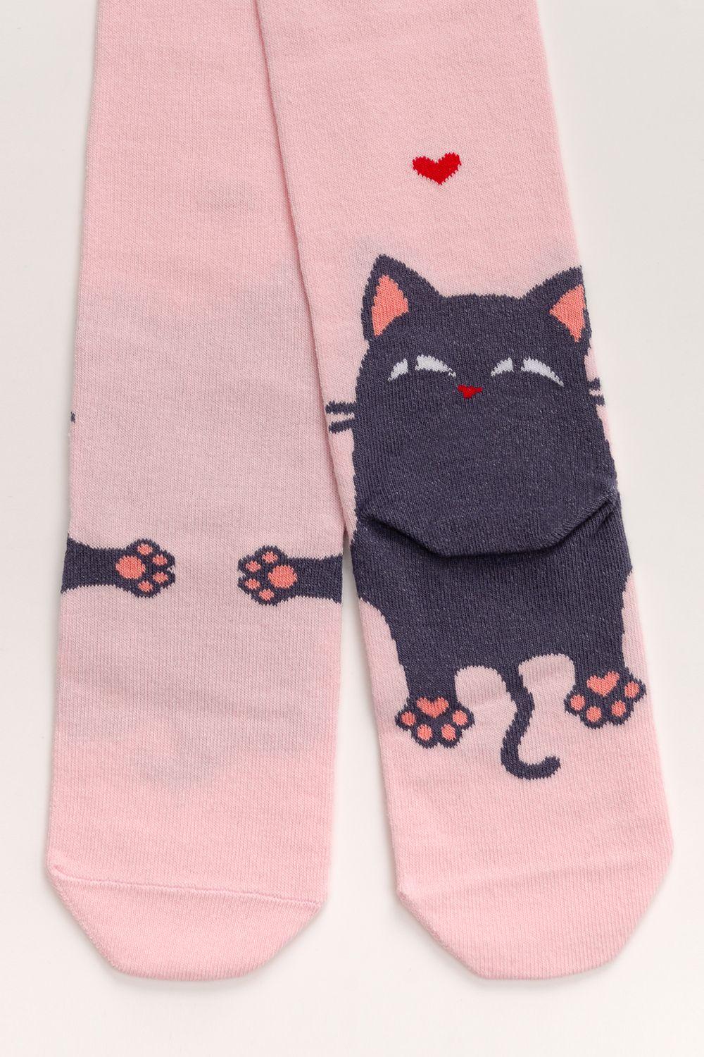 Оригинальные колготки для девочек. На пятке изображение милого котика.