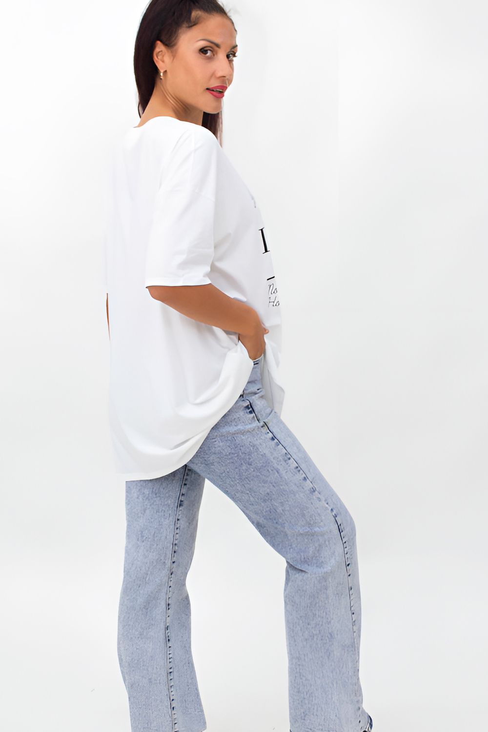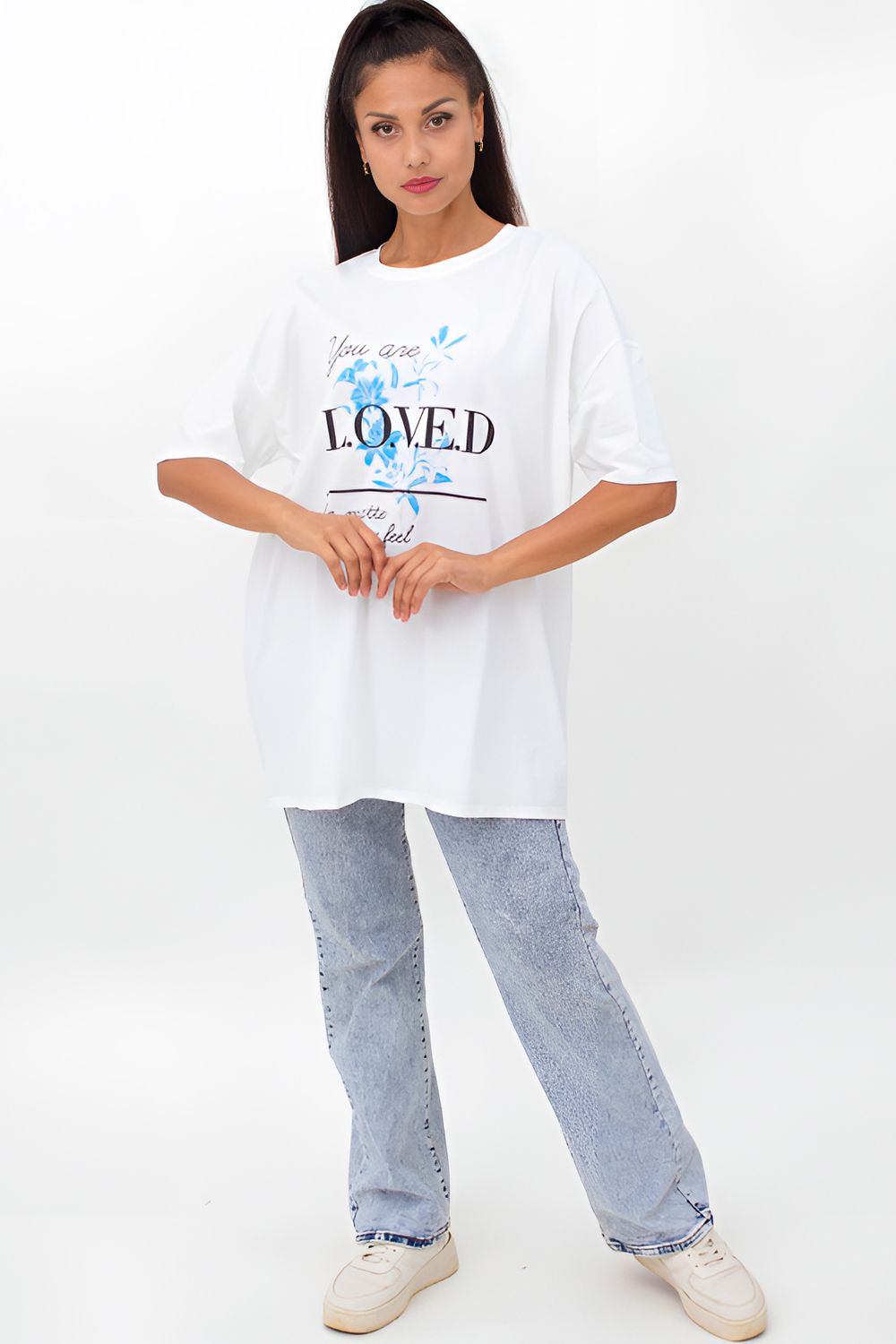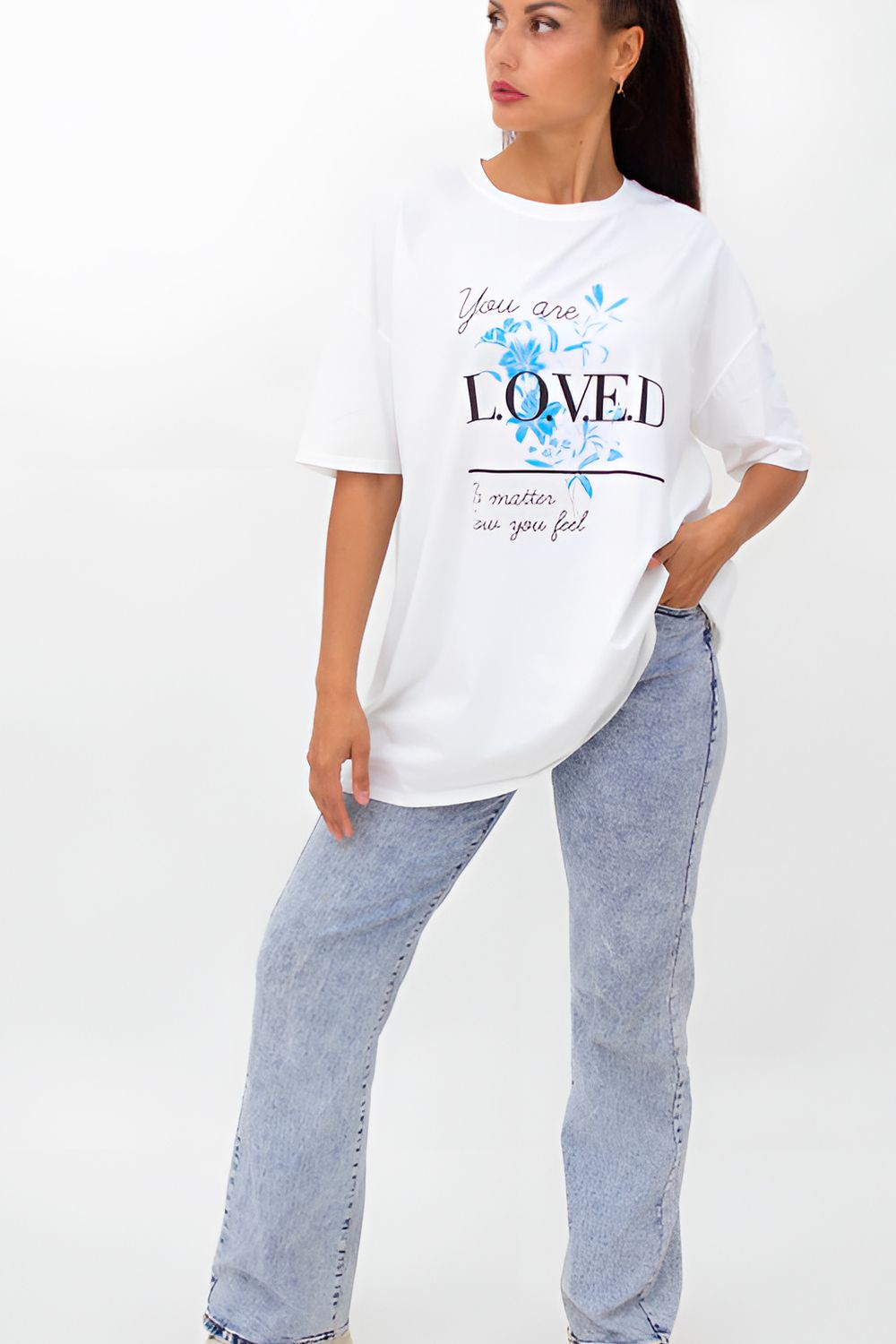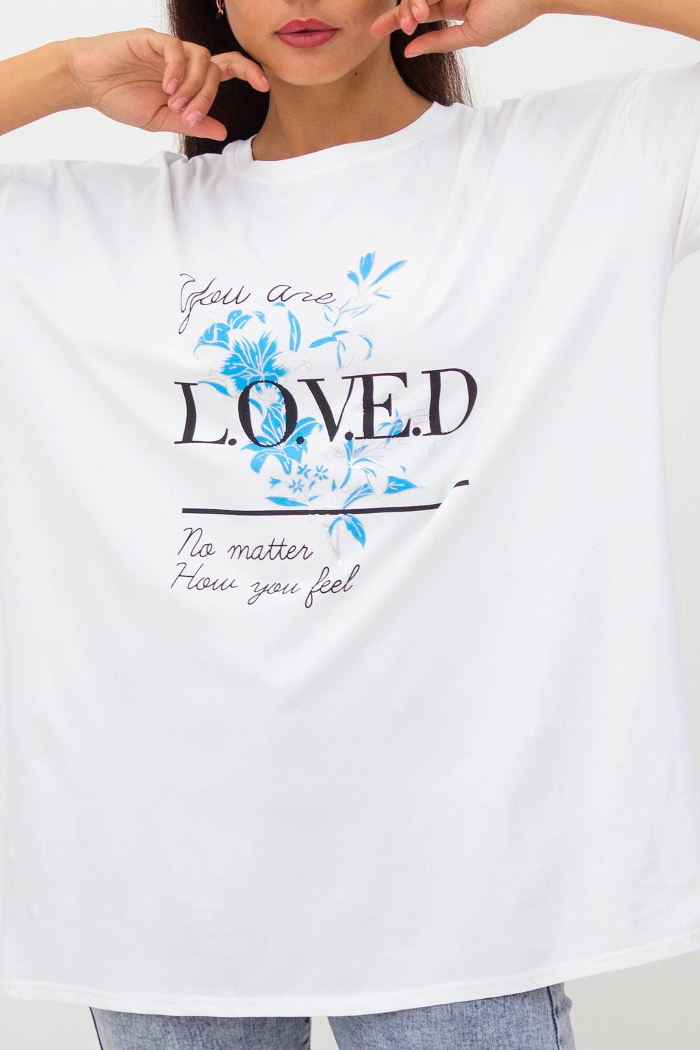Модная футболка с цветами оверсайз, арт.2803 - белый