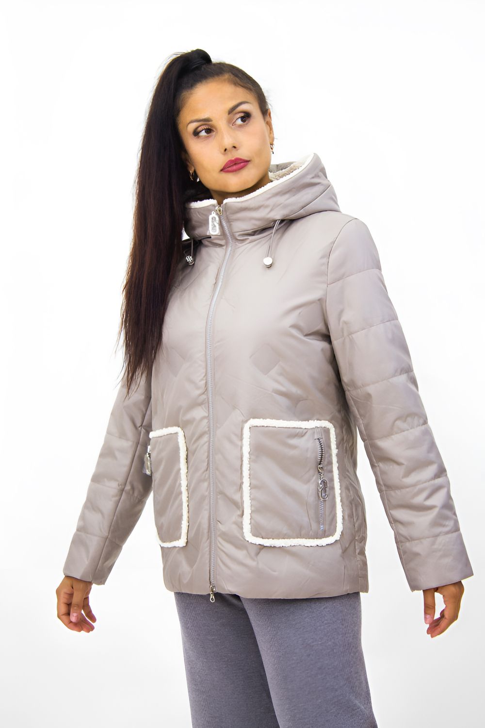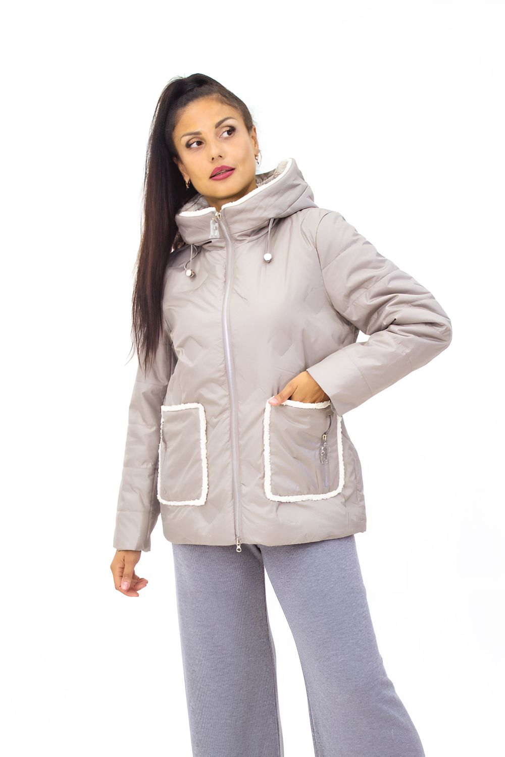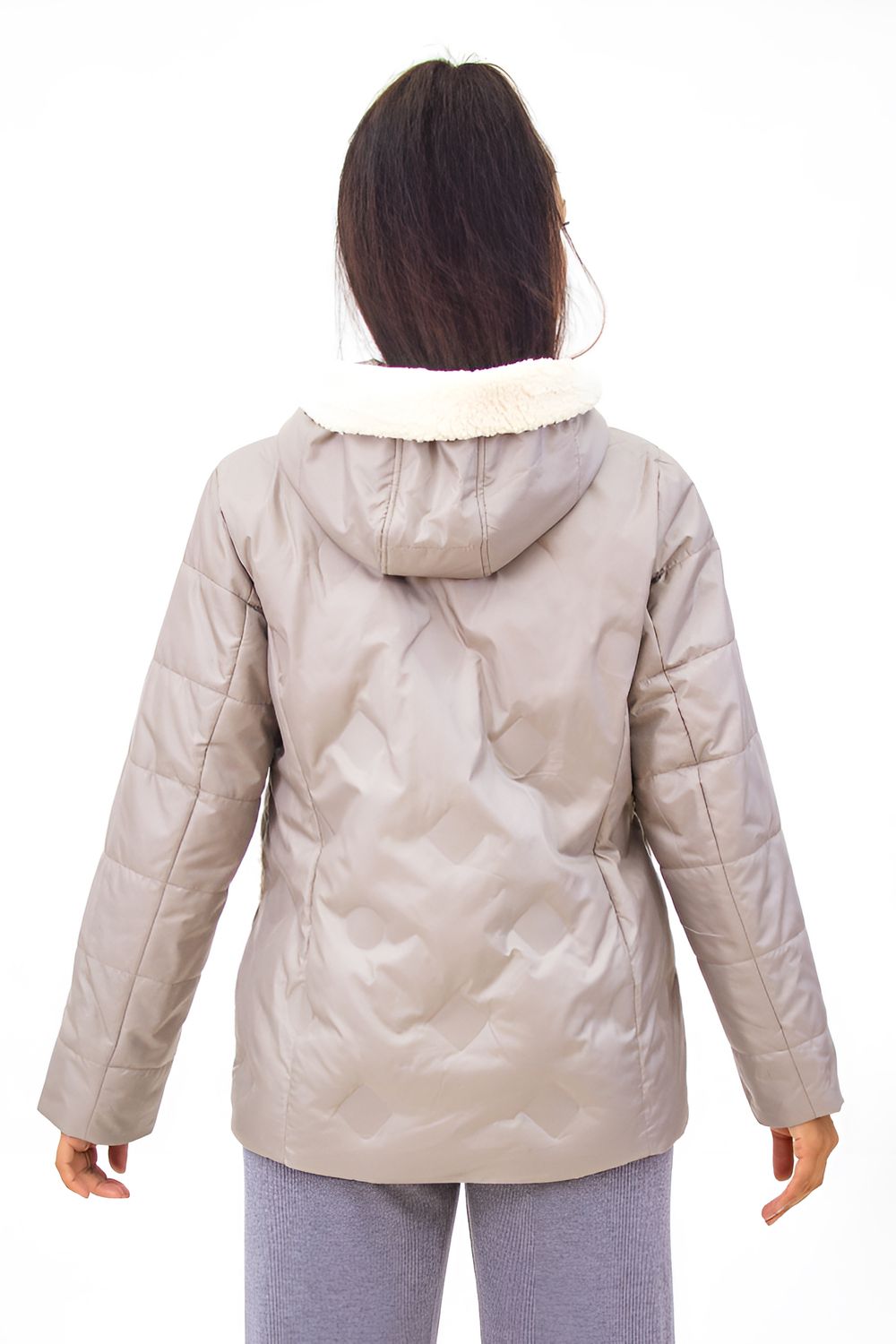 Модная куртка с меховой отделкой Тренд, арт. 926 демисезон. - бежевый