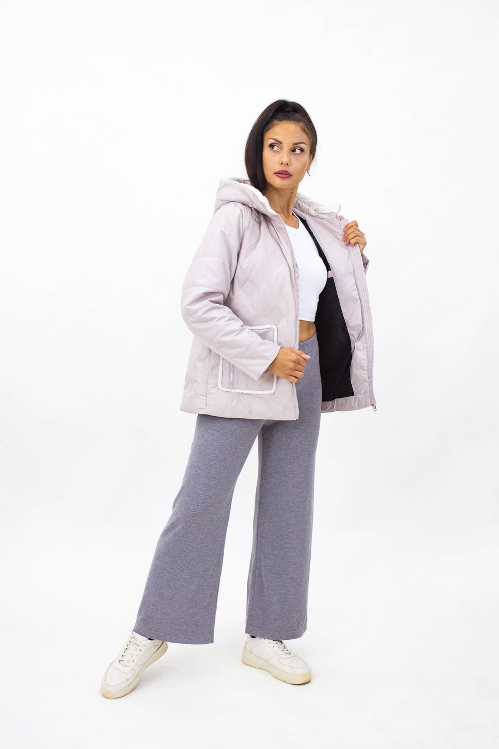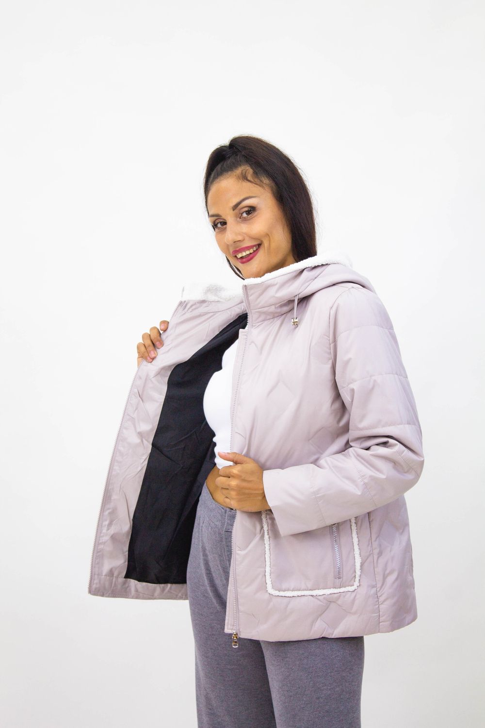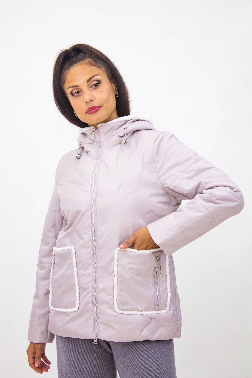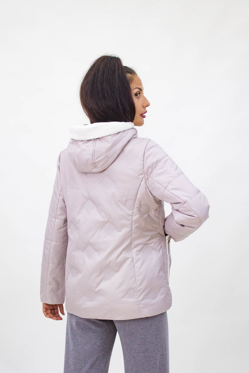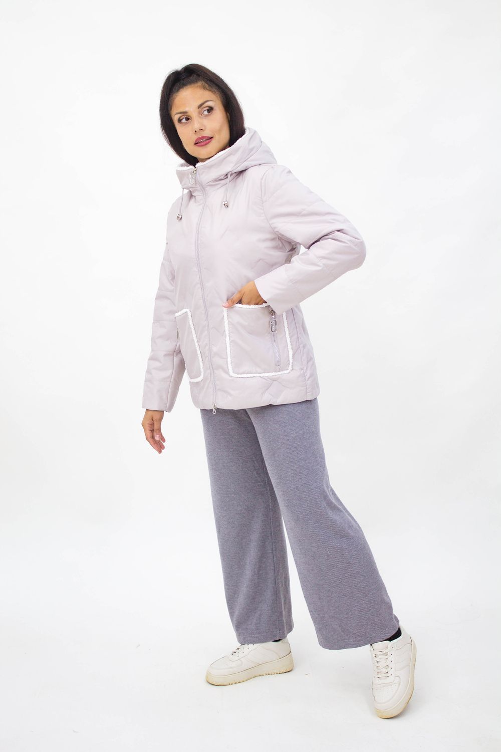Модная куртка с меховой отделкой Тренд, арт. 926 демисезон. - серо-розовый