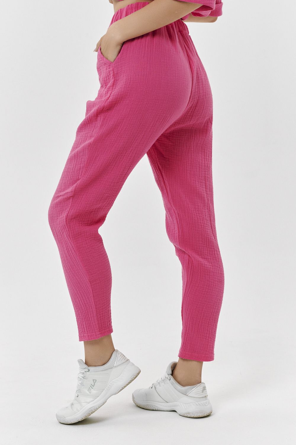 Брюки свободные, на поясе, с боковыми карманами. В верхней части передних половинок по шву притачивания пояса расположены складки.