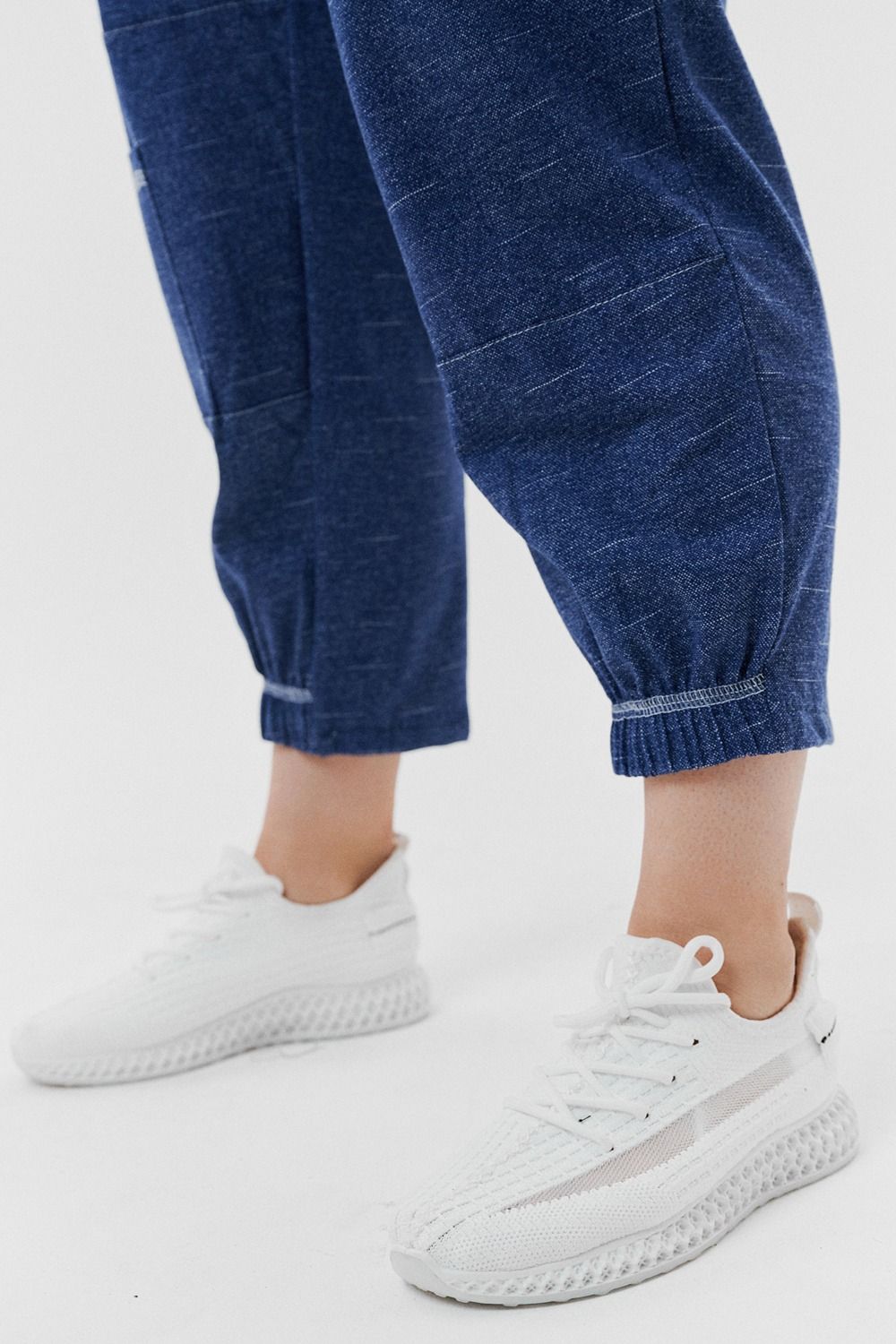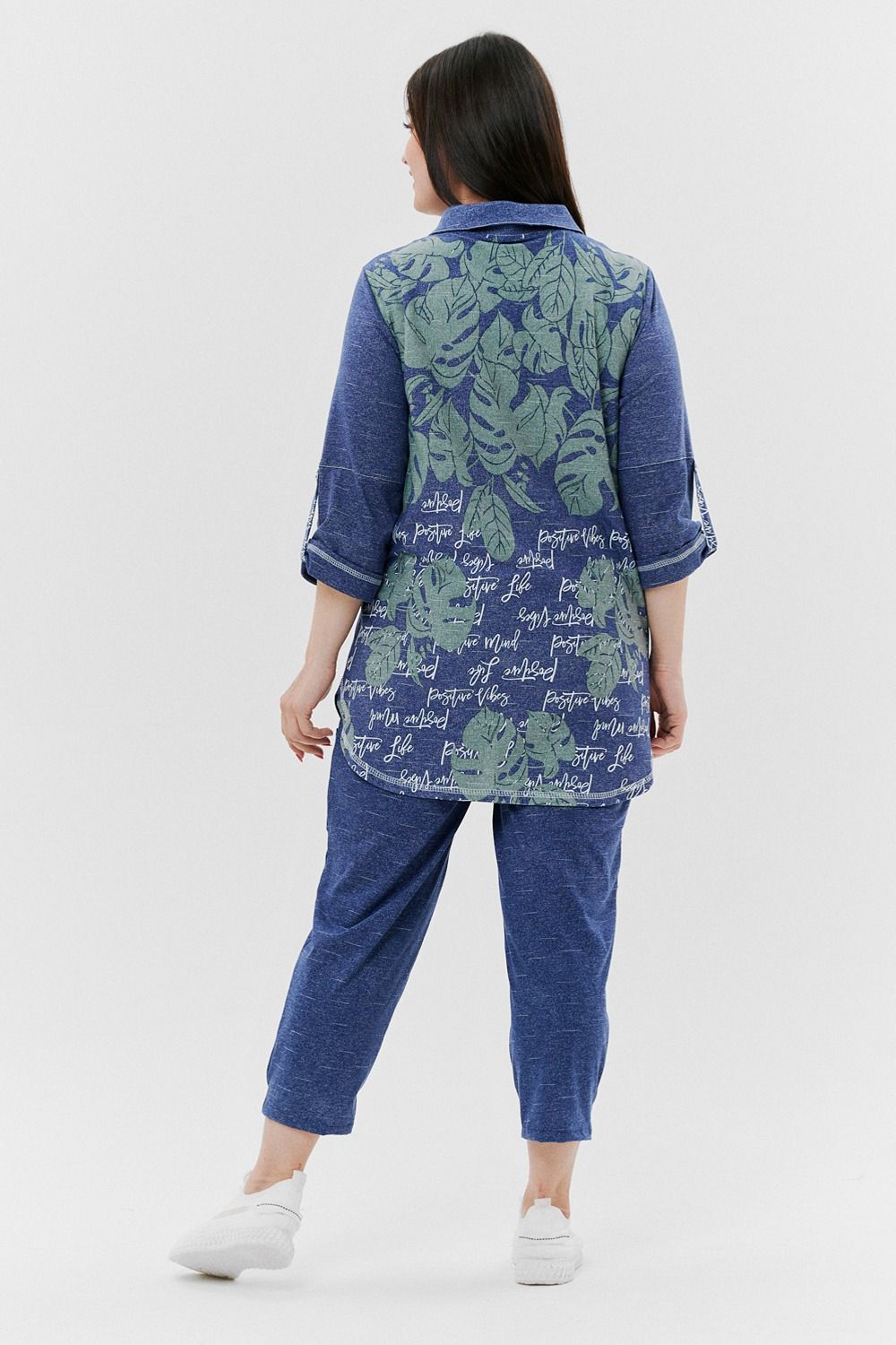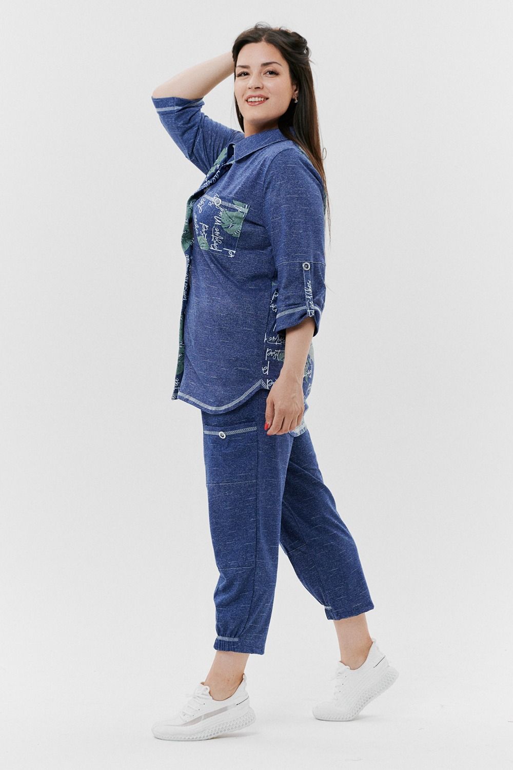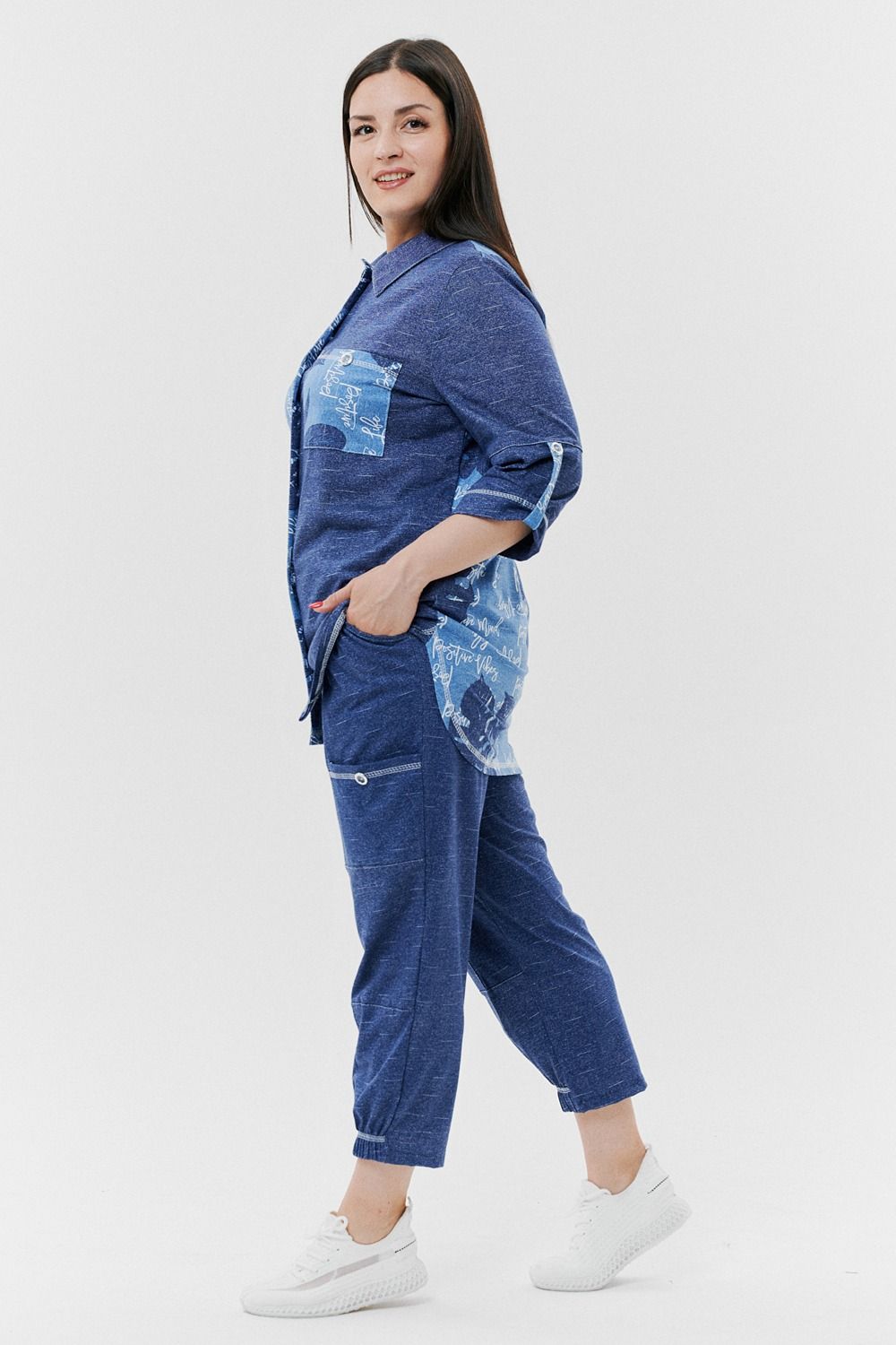 Брюки женские, "бананы". На передней части брюк внутренние карманы. Также имеются два накладных кармана с пуговицей, Один в верхней части брюк, другой на средней части брюк. Низ передней половинки брюк на резинке. Пояс прострочен на многоигольной машине.