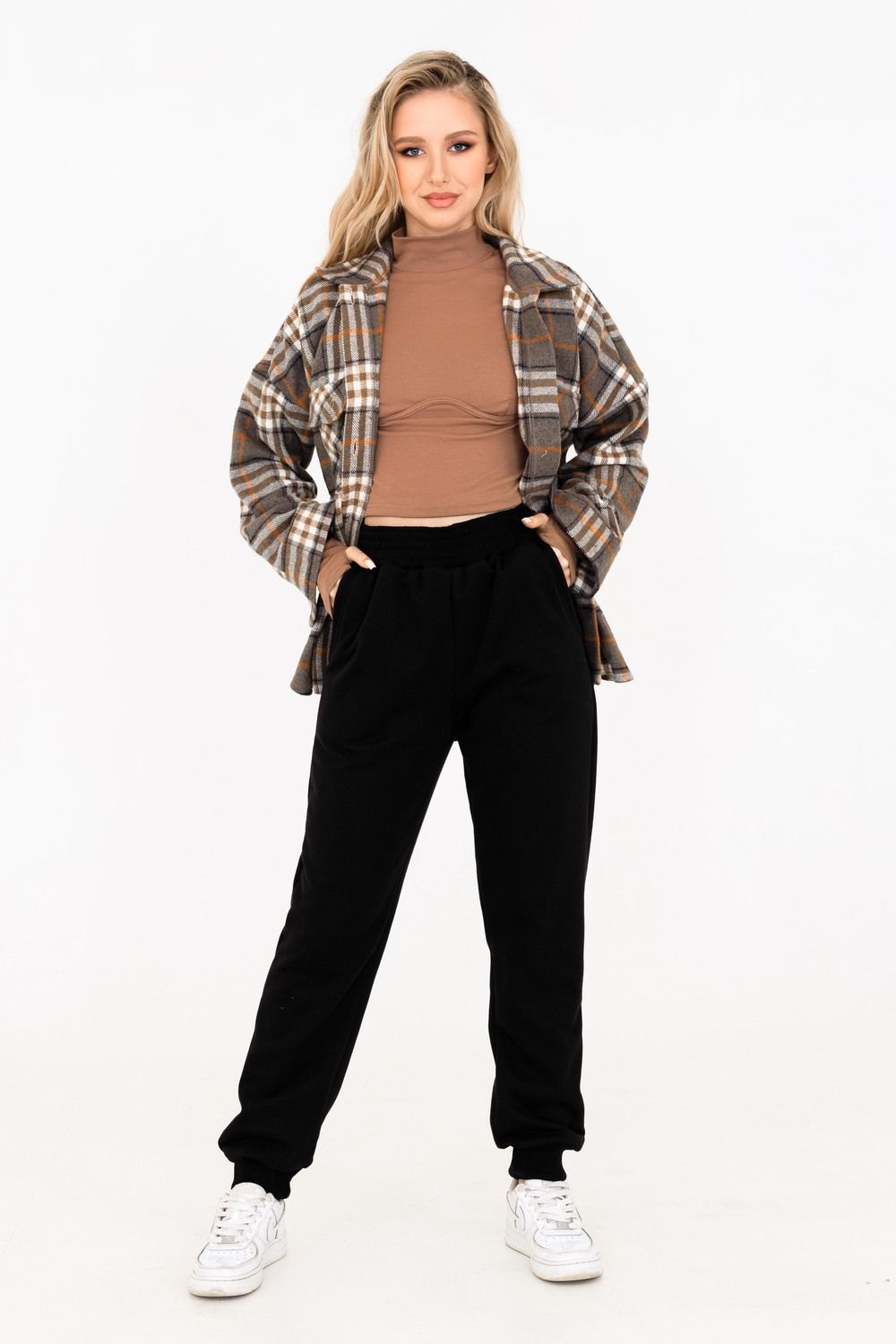 Брюки-джоггеры изготовлены из шикарной ткани интерсофт с начёсом "барашек". Плотность 320 гр. В отличие от ткани футер 3-нитка начёс не осыпается и не пиллингуется. Ткань плотная, упругая, мягкая, одна из толстых и тёплых видов трикотажа в своей группе. Начёс ткани обработан специально в виде барашка. Очень красивый и приятный к телу. Ткань двухсторонняя - интерлок пенье плюс флис. Джоггеры с высокой талией, прямого свободного кроя, слегка зауженные к низу. Имеют внутренние карманы. Пояс обработан на поясной машине, поэтому резинка не скручивается при эксплуатации. Нижняя часть брюк и пояс изготовлены из очень качественной резинки-кашкорсе в цвет основной ткани. В измерениях обхвата талии указан размер резинки, которая без проблем растягивается до стандартных значений фигуры. Носите с удовольствием! В комплект к брюкам можно приобрести толстовку 21562; продается отдельно