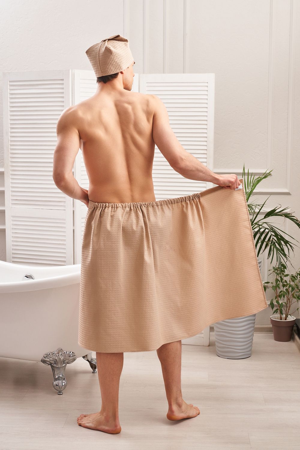 Ну кто не любит попариться в настоящей бане, или насладиться отдыхом и спа-процедурами? Если вы частый посетитель саун и бань, то вам непременно необходим этот великолепный килт банный мужской. Этот набор банный заменит все для бани и сауны, при этом в комплект входит стильная чалма в подарок. Этот килт и тюрбан будут служить как халат и банная одежда для мужчин, для детей и для мальчиков, как полотенце банное на резинке и даже как парео для пляжа. Текстиль банный вафельный - это чистый хлопок, вафельное полотно высокой плотности 240 г/м2 прекрасно впитывает влагу. Поэтому вафельные килты на резинке намного лучше впитывают влагу, чем махровый халат или полотенце и при этом он намного компактнее и занимает немного места. Килт вафельный размером 75х150 см идеально и надежно держится на поясе. Комфортные и удобные накидка и шапочка станут вашим незаменимым спутником в бане, сауне, спа-салоне и просто в душевой спортивного клуба.